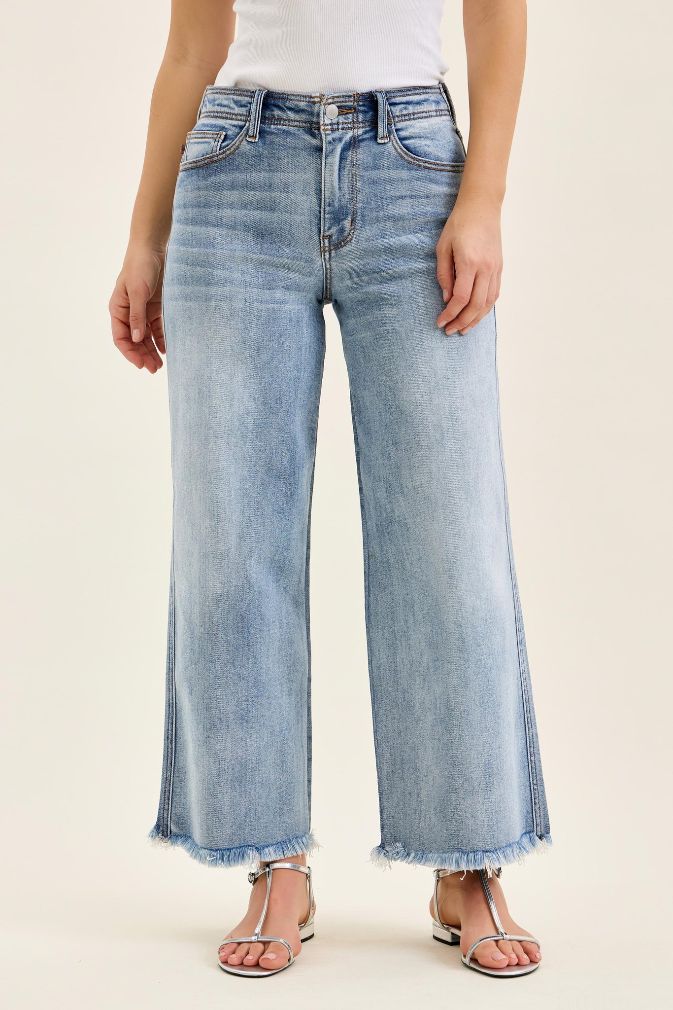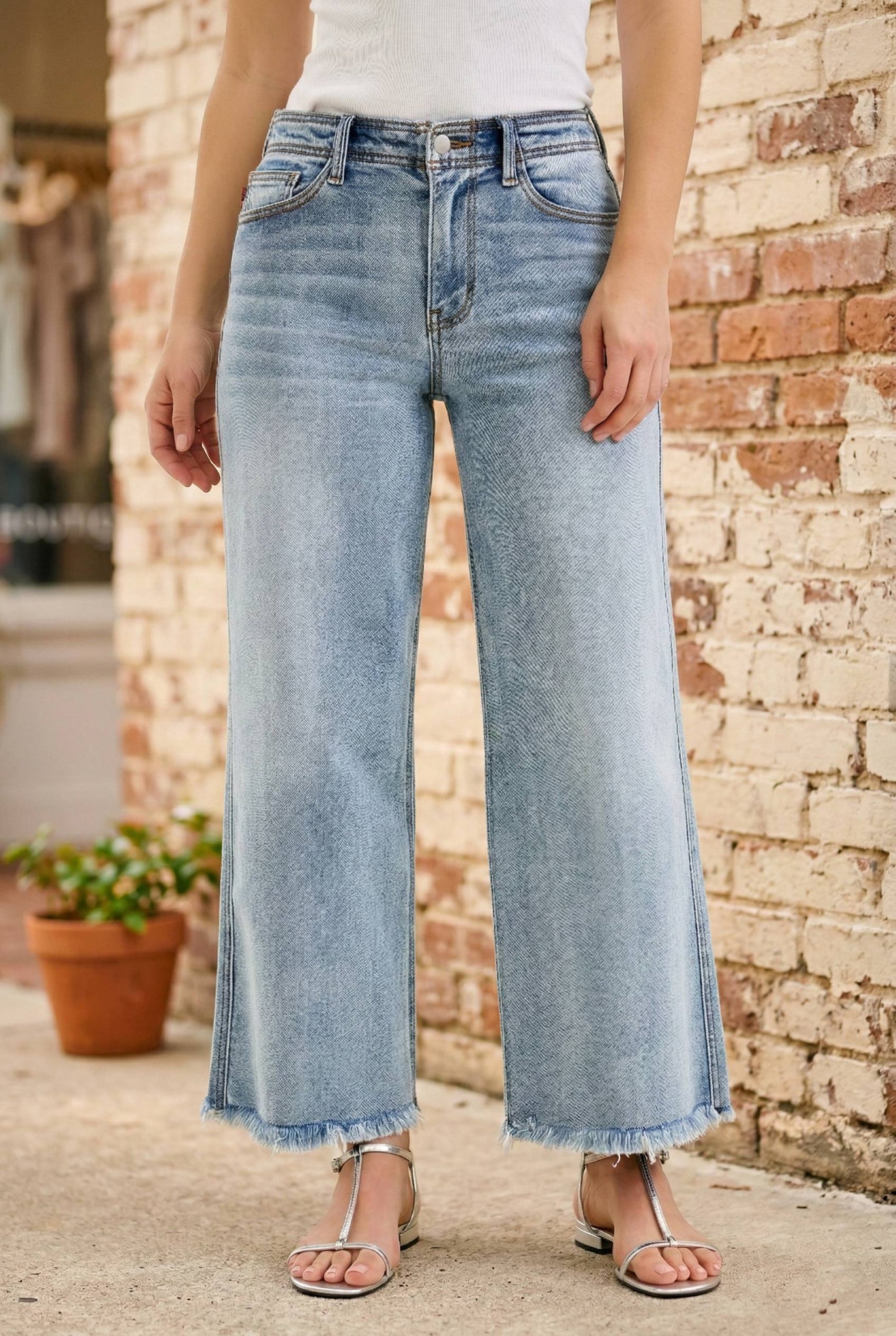 Elevate your denim game with these Judy Blue Mary jeans, featuring a flattering mid-rise fit and trendy wide-leg silhouette. The 4-way stretch fabric moves with you for all-day comfort, while the ankle fray hem adds an effortlessly cool, lived-in vibe. Crafted from a premium cotton blend with just enough spandex for flexibility, these jeans deliver both style and wearability. Perfect for creating versatile looks from casual to dressed-up.