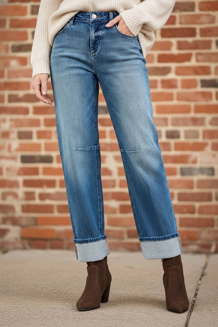 These slouchy crop jeans feature a trendy barrel cuff design for a unique and fashionable look. The cropped length adds a modern touch to the classic denim style. With a slouchy fit, these jeans offer comfort and ease of movement for everyday wear. Elevate your casual outfit with these stylish slouchy crop barrel cuffed jeans. Stay on-trend and comfortable in this versatile and chic denim piece.