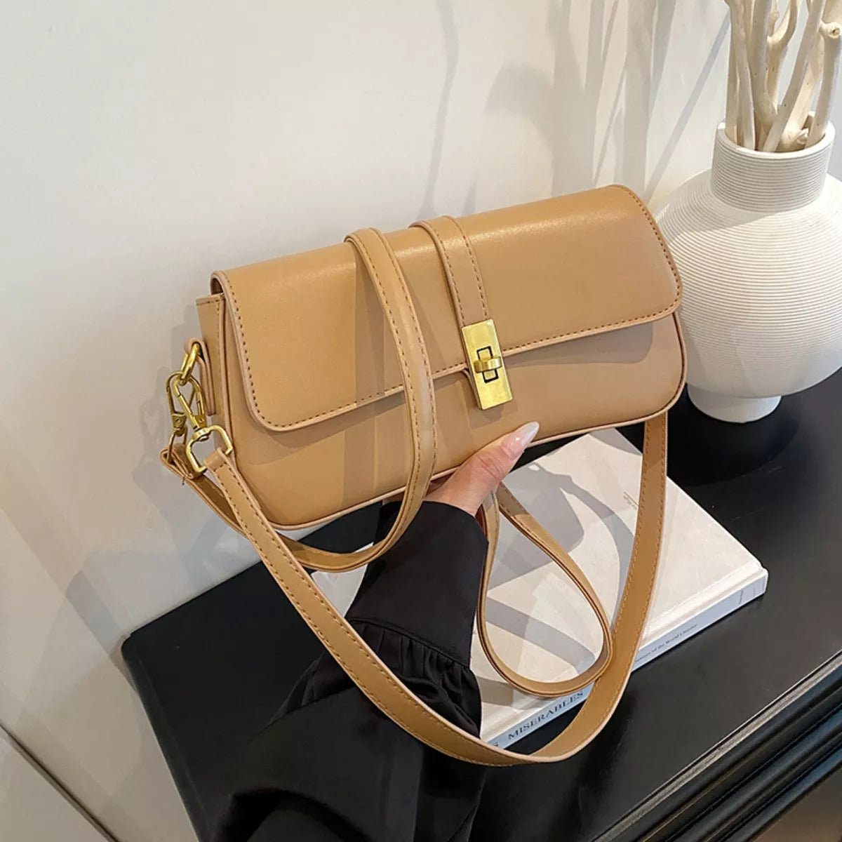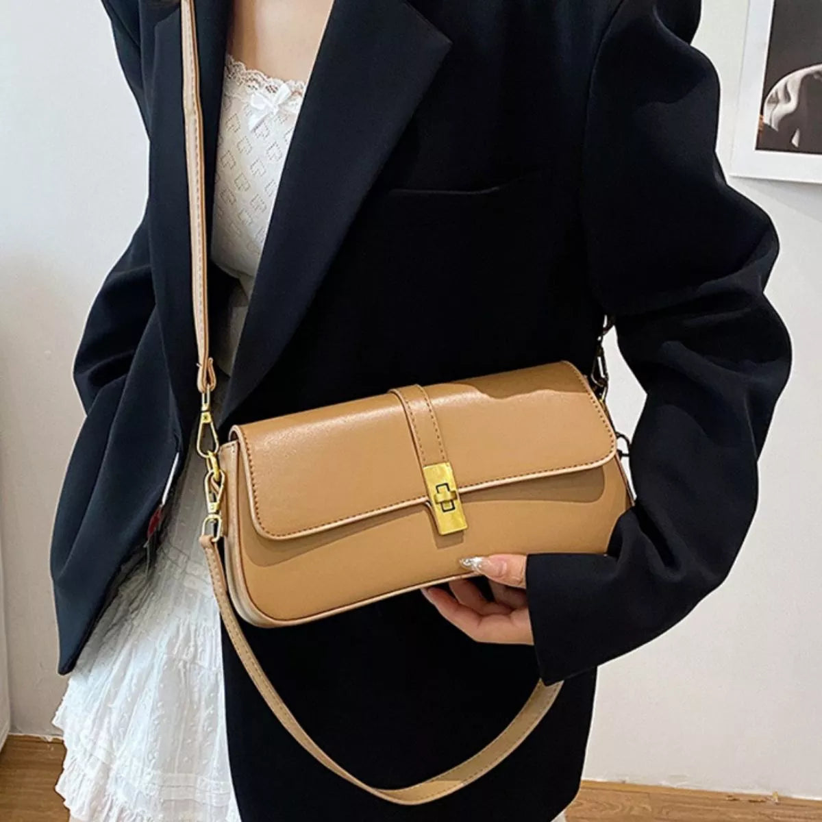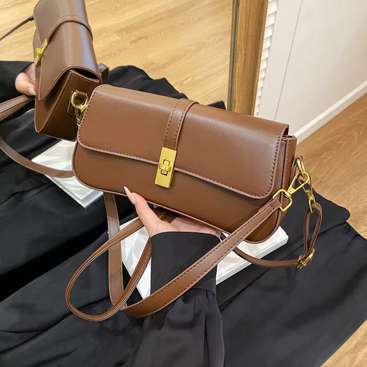 Step out in high-end style with Fifth Avenue Flap Crossbody! This structured rectangular bag features a sleek silhouette and a smooth, rich Vegan PU Leather finish. The front flap is secured by a chic gold-tone turn-lock buckle, adding a touch of sophisticated hardware. With a long, adjustable strap, this bag can be worn comfortably across the body or elegantly over the shoulder. It's the perfect compact size for carrying your essentials while elevating any outfit from casual to polished.