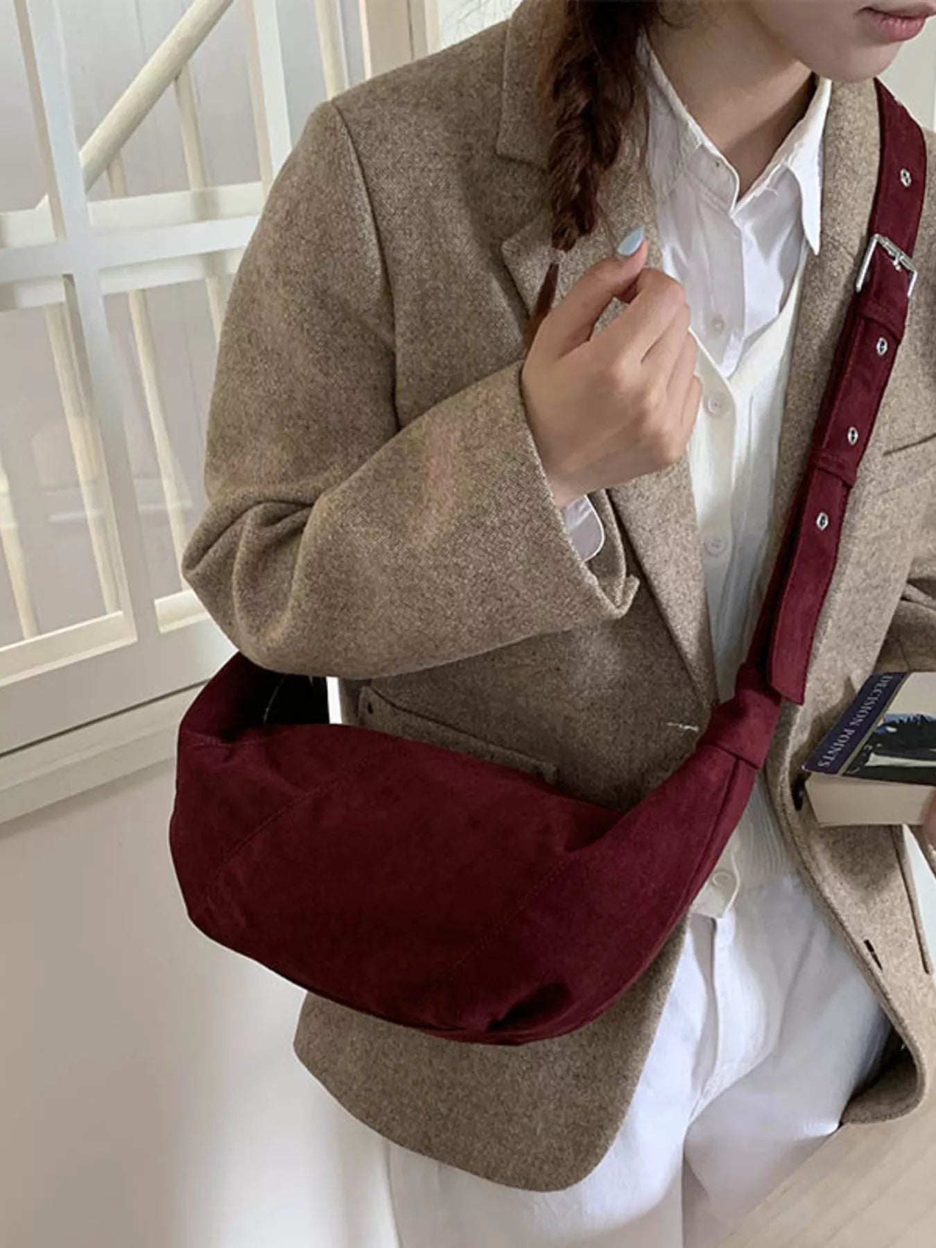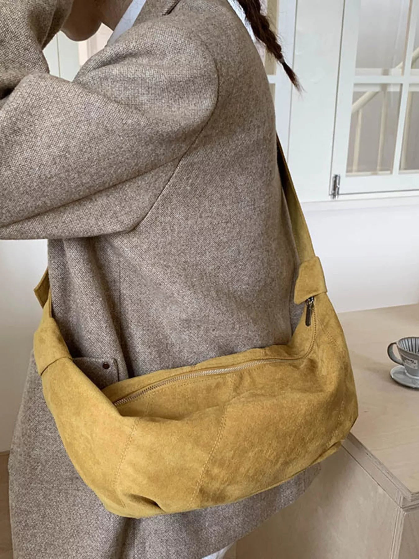 Meet Everyday Nomad Suede Slouch Bag—the ultimate companion for your busy life. This casual oversized crossbody features a relaxed, comfortable shape and is crafted from a soft, rich suede-like material. The long, adjustable strap allows you to wear it perfectly across the body or over the shoulder. With a secure top zip and a roomy interior, this bag holds everything you need while adding an effortlessly stylish, bohemian flair to your look. Available in two rich colors!