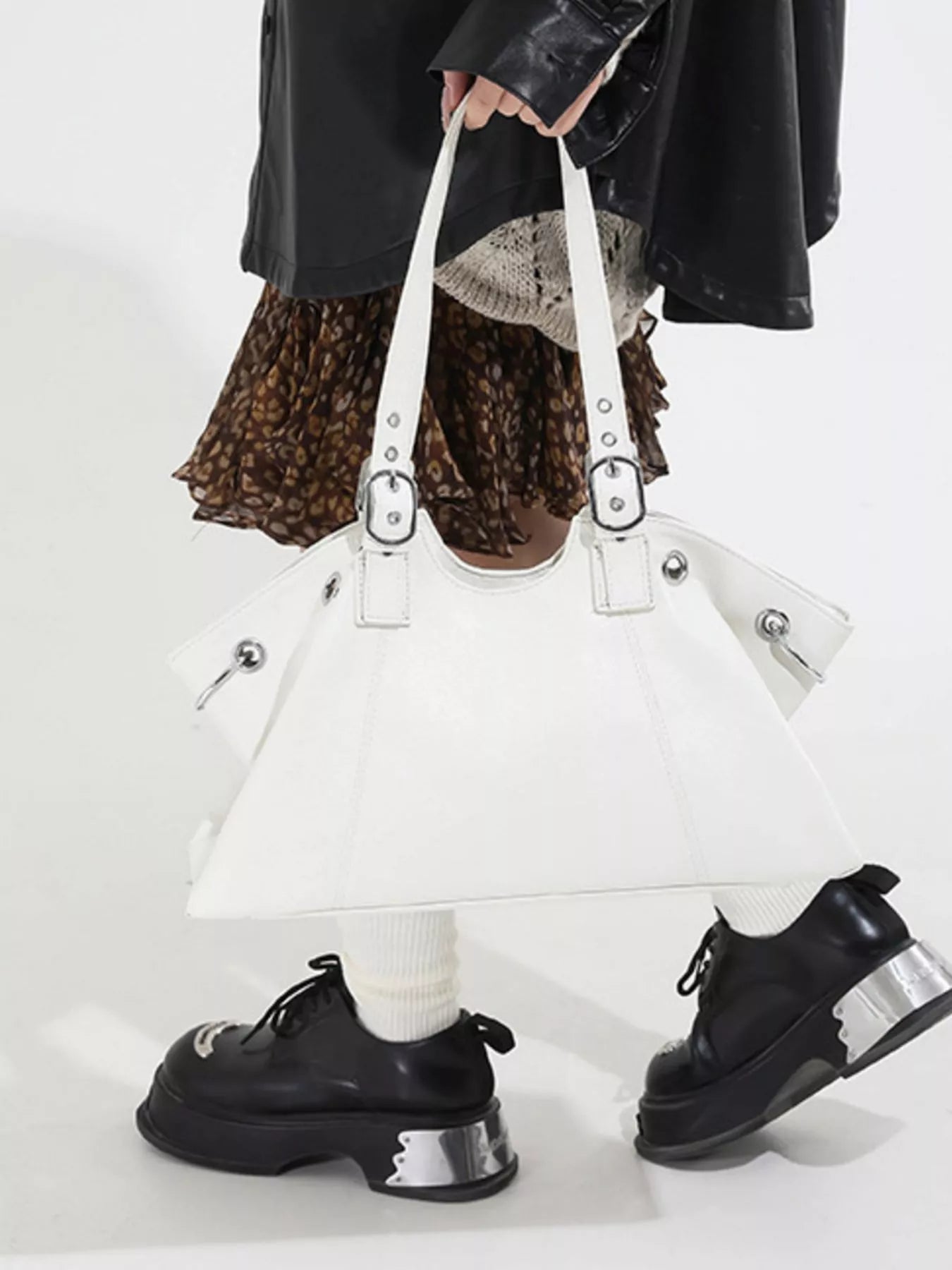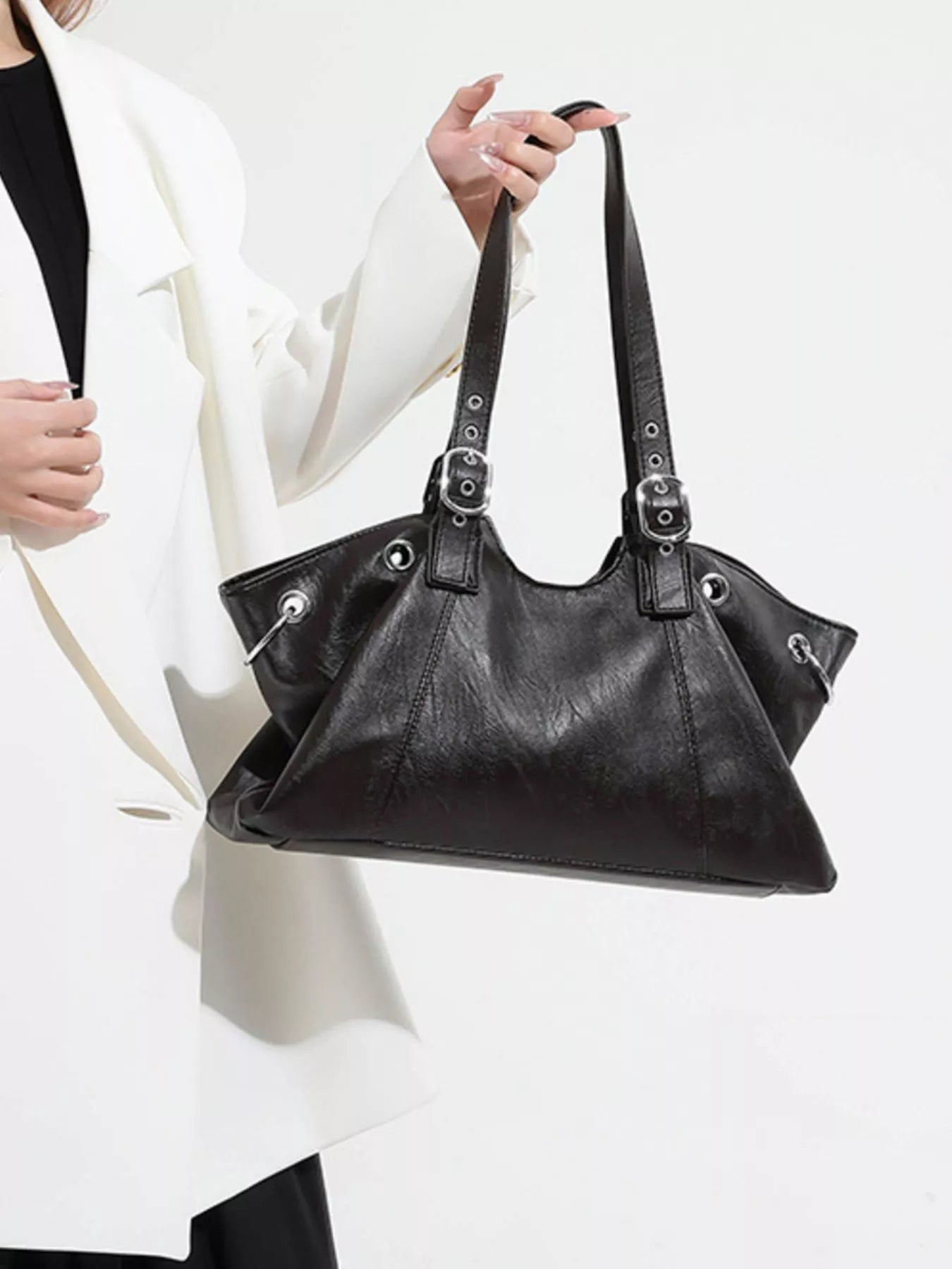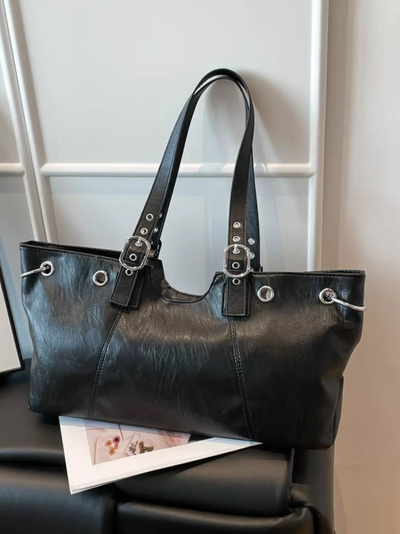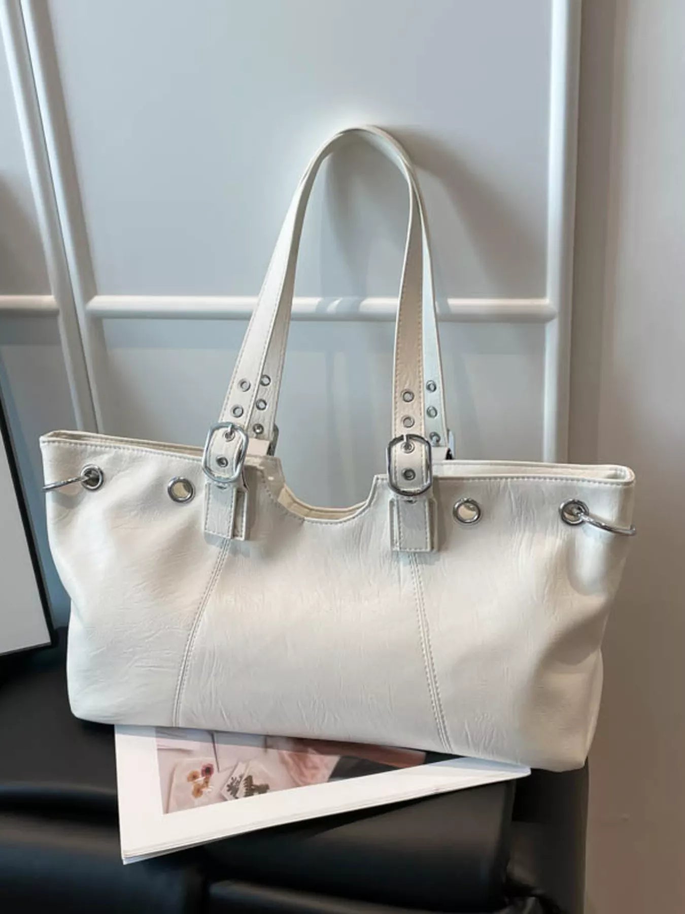 Command the day with the City Luxe Heritage Tote, a piece that seamlessly blends vintage character with modern sophistication. Crafted from premium PU Vegan Leather with a rich, textured grain, this large-capacity bag is designed for the woman on the move. Its structured silhouette is elevated by striking silver-toned hardware, featuring bold grommets and distinctive buckle-accented straps that evoke a high-end, editorial feel. Whether you’re navigating the morning commute or heading to a late-afternoon gallery opening, this tote provides ample space for your laptop, essentials, and more, all while maintaining a sleek, professional profile.