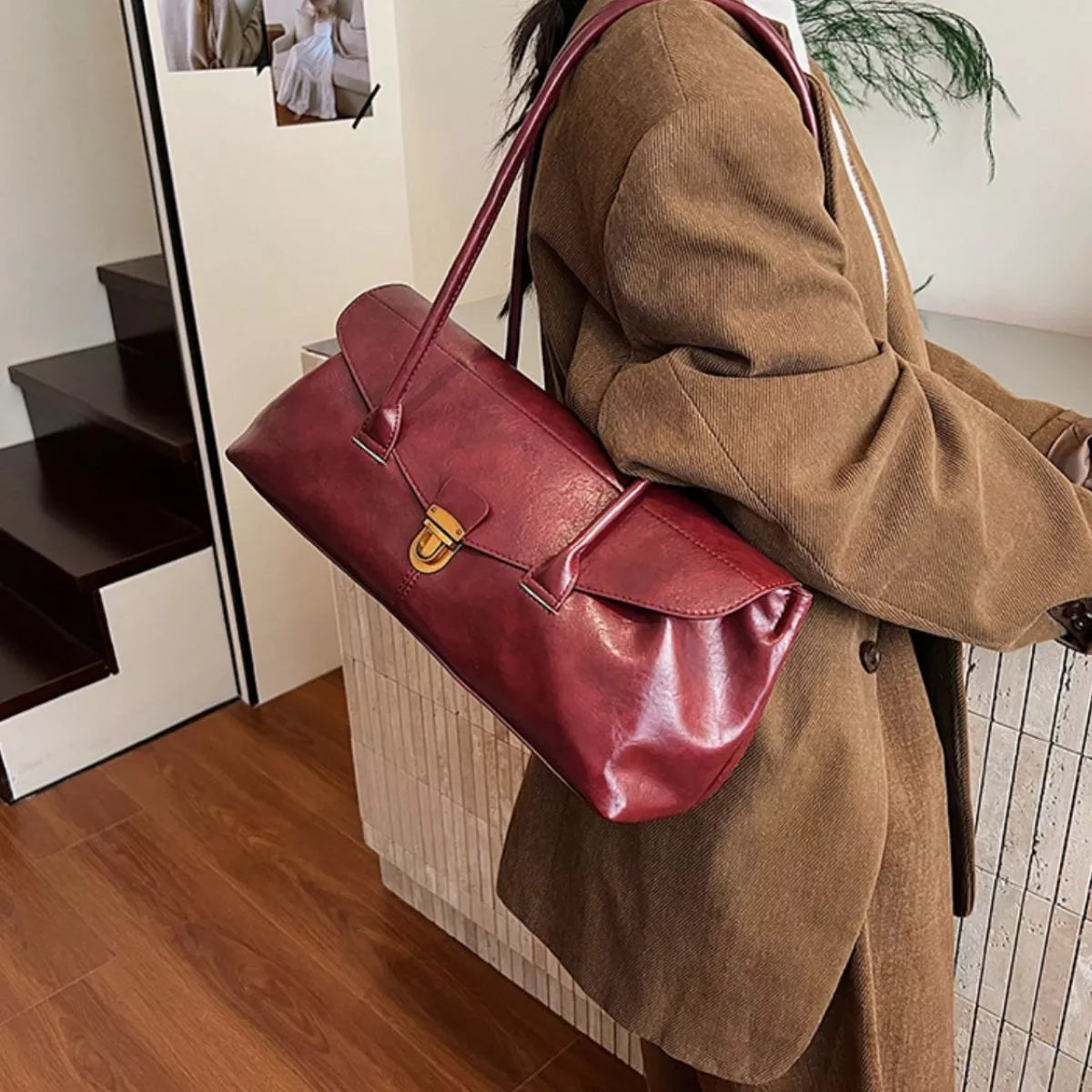 Capture timeless sophistication with Vintage European Flair Shoulder Bag! This structured medium-sized bag features a sleek, elongated silhouette and a beautiful turn-lock flap closure. The rich Vegan PU Leather has a slight sheen, giving it an authentic, well-loved vintage feel. With both a sturdy top handle and a long, comfortable shoulder strap, this bag is perfect for carrying your daily essentials while adding tailored, retro polish to your look. Available in multiple versatile colors!