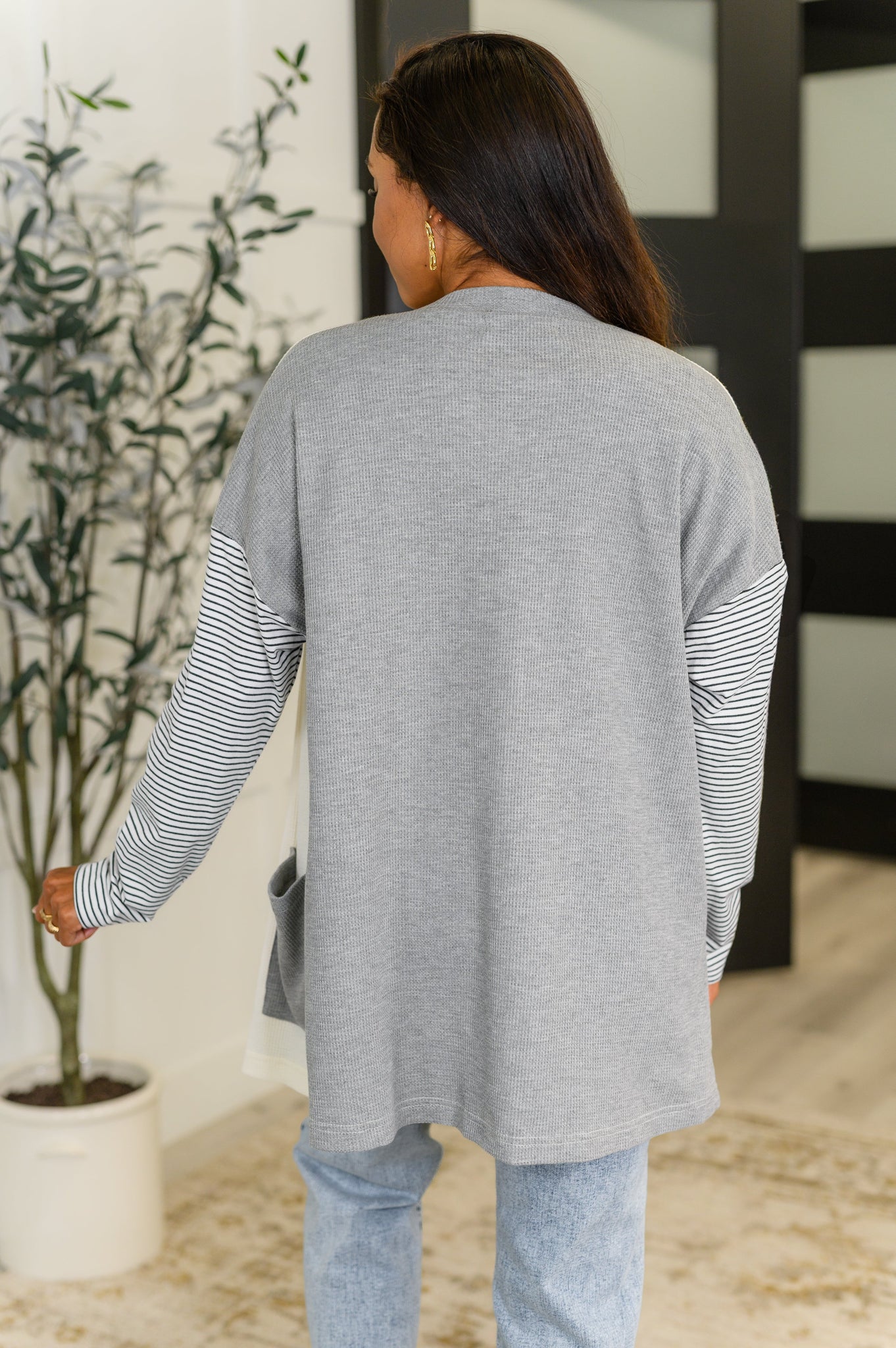 The Consider it So Color Block Cardigan is the perfect layering piece for effortless style and comfort. Designed with a cozy waffle knit and soft jersey knit contrast, this cardigan offers a unique blend of textures. The open front and relaxed drop shoulder silhouette make it easy to throw on over any outfit, while the functional front patch pockets add a practical touch. Whether you're lounging at home or heading out for the day, this cardigan brings a laid-back yet stylish vibe to your wardrobe.