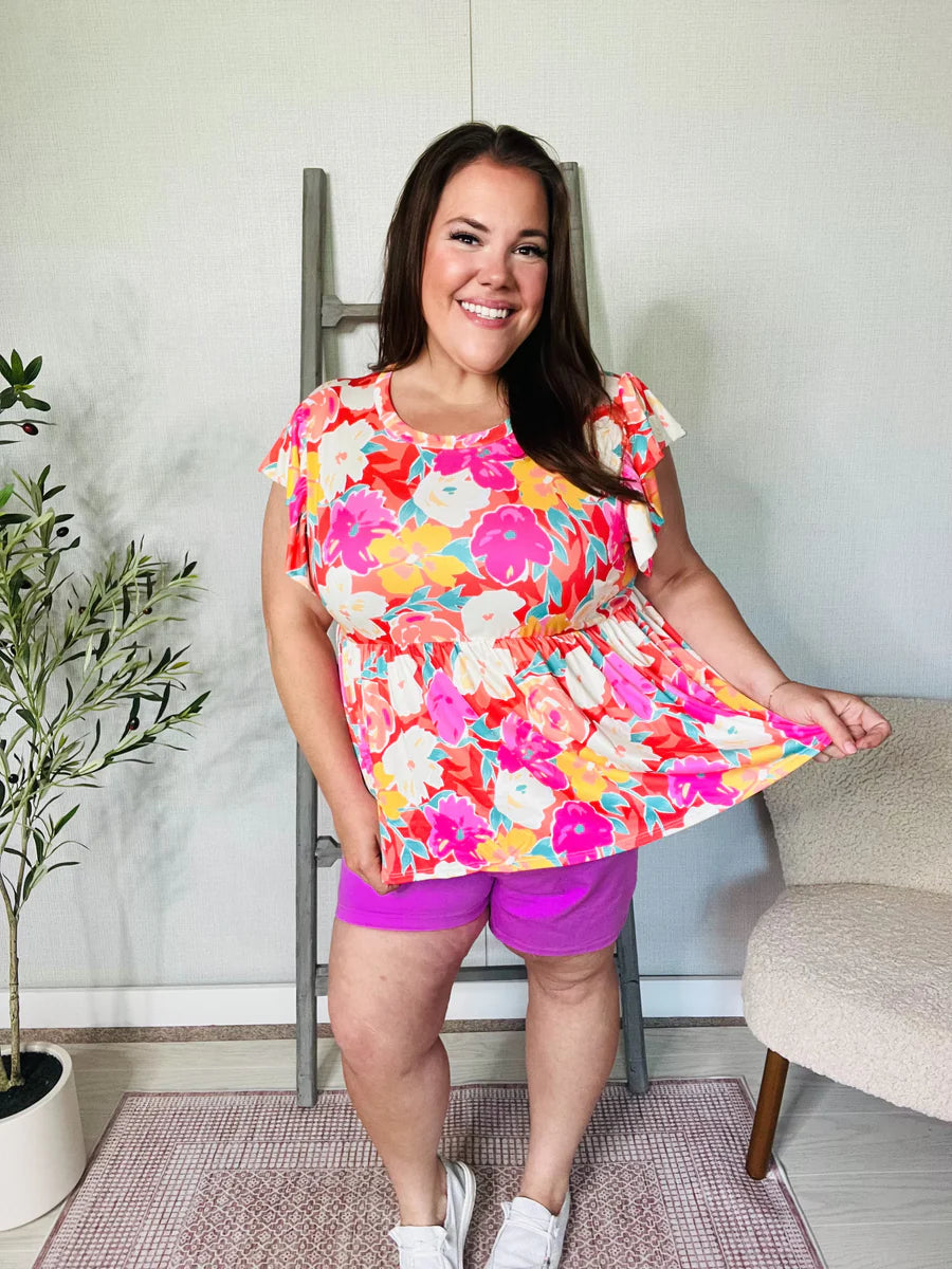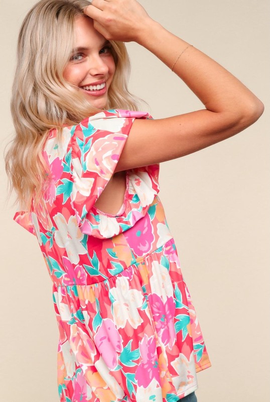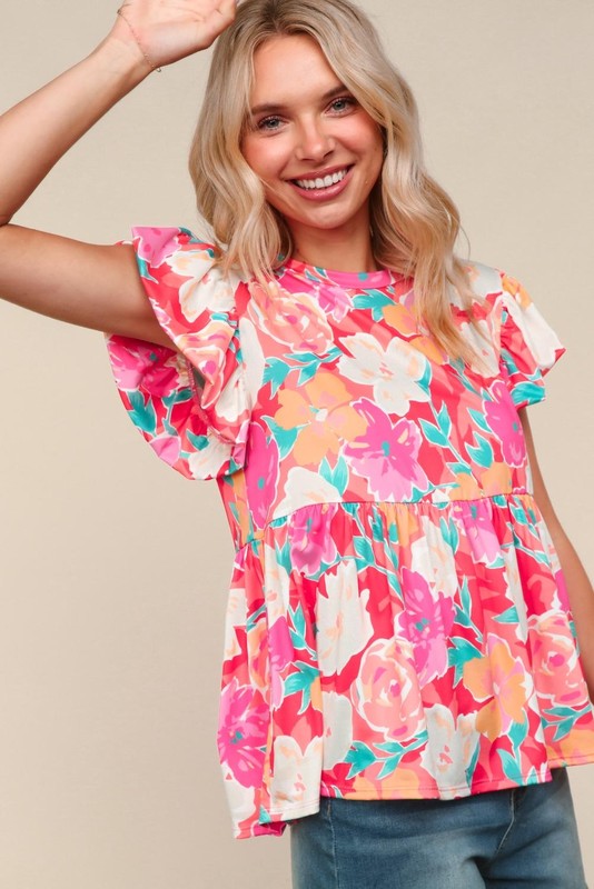 This lightweight and adorable babydoll peplum top features stunning floral print, folded short sleeves and a classic round neck. Add instant casual chic to any ensemble.