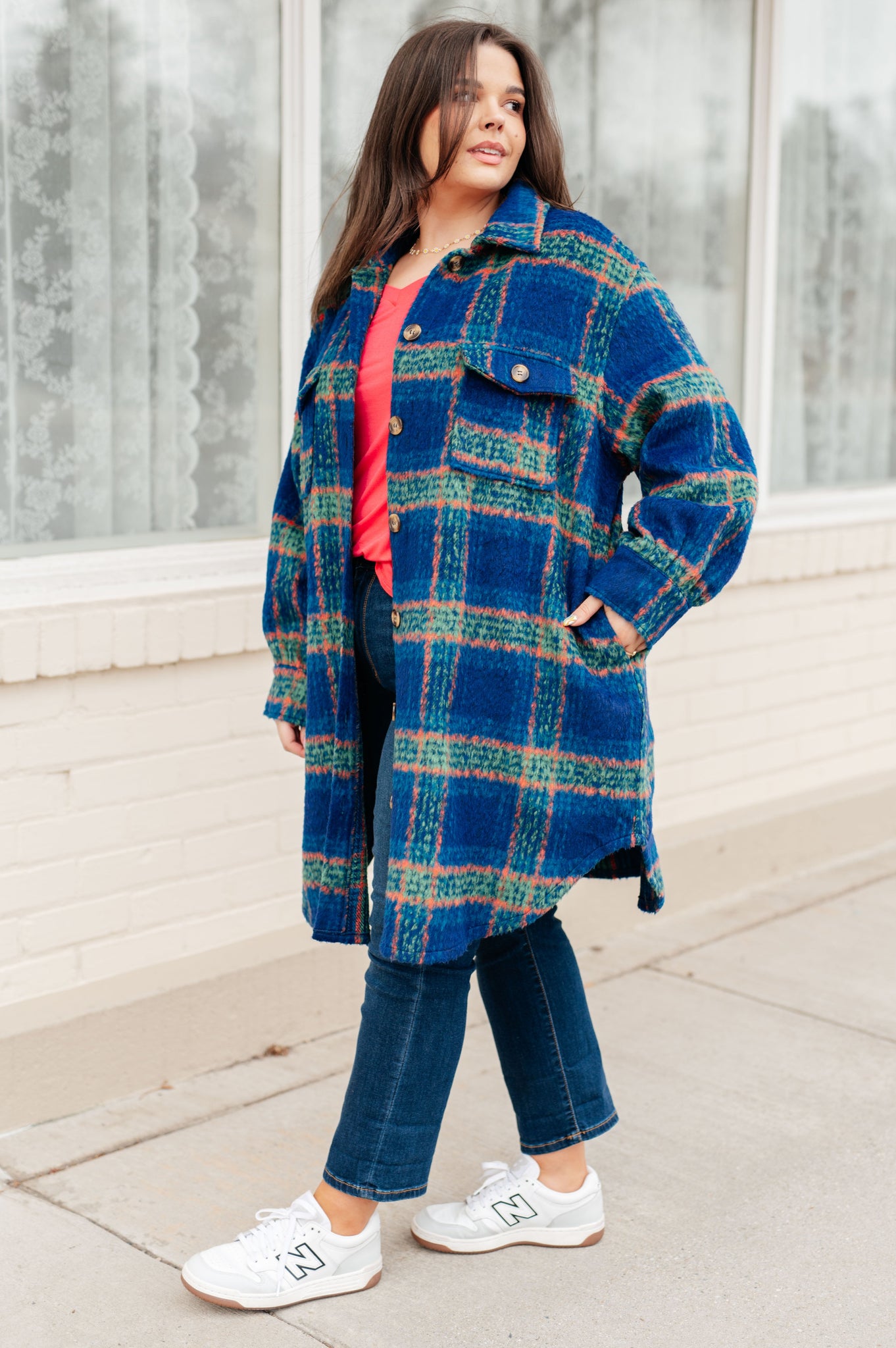 Stay warm and stylish in our No Tears Plaid Coat. Made from mid-weight brushed flannel, this coat is perfect for chilly weather. The button front and scooped hem add a touch of sophistication, while the large scale plaid pattern makes a statement.