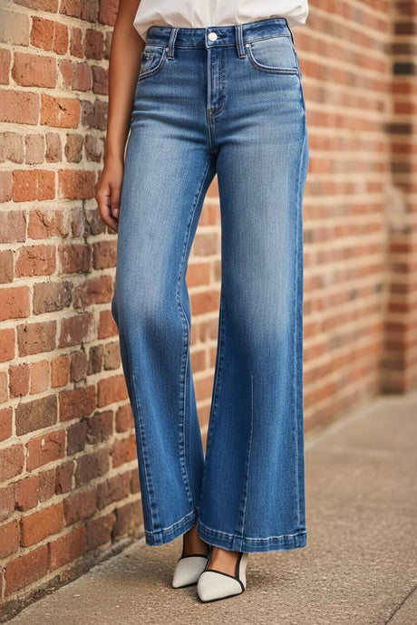 RISEN Mid Rise Wide Leg Jeans with Flared Look