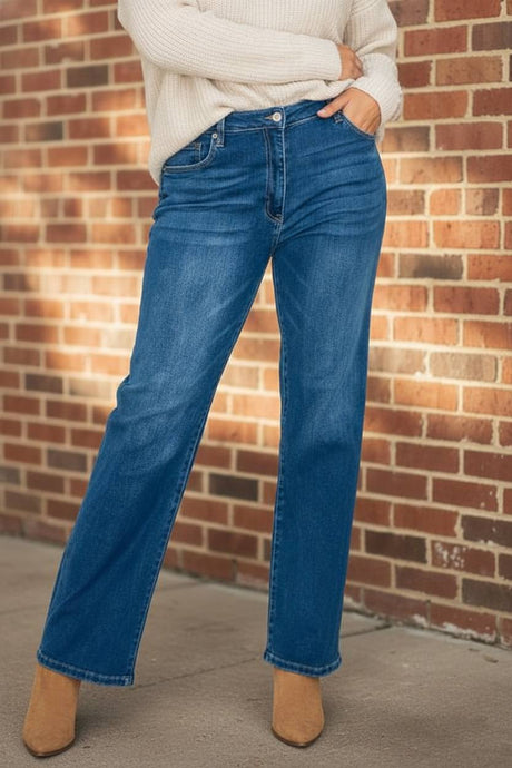 JUDY BLUE Mid Rise Bootcut Jeans with Contrast Wash & Front Patch Pockets