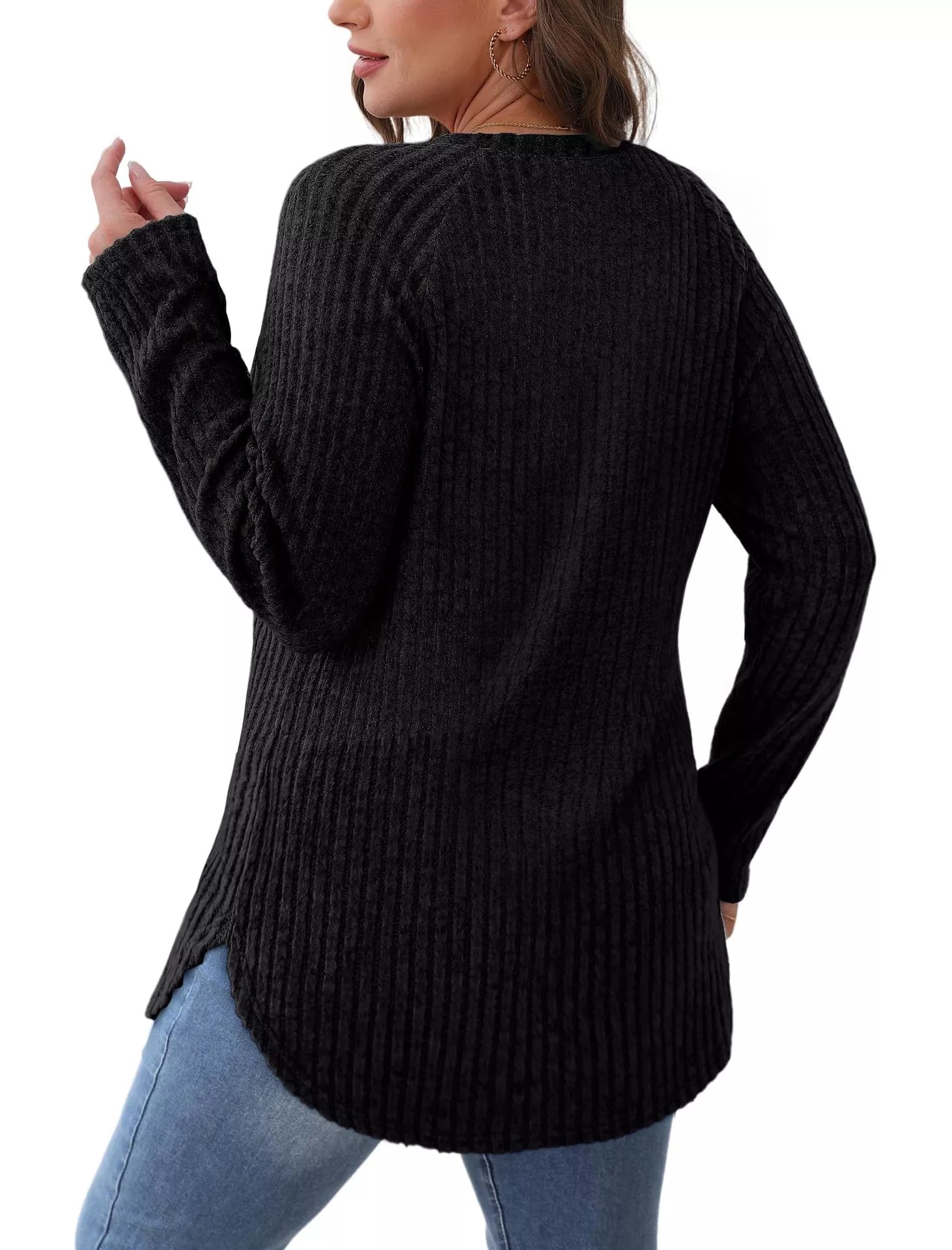 This comfortable long-sleeve tunic features an all-over soft ribbed texture that gives it visual dimension and cozy warmth. The relaxed, flowy silhouette and simple round neck with a subtle side slit make it an easy piece to wear alone over leggings or half-tucked into jeans. It's the ultimate essential for running errands, casual gatherings, or simply enjoying a cozy day!