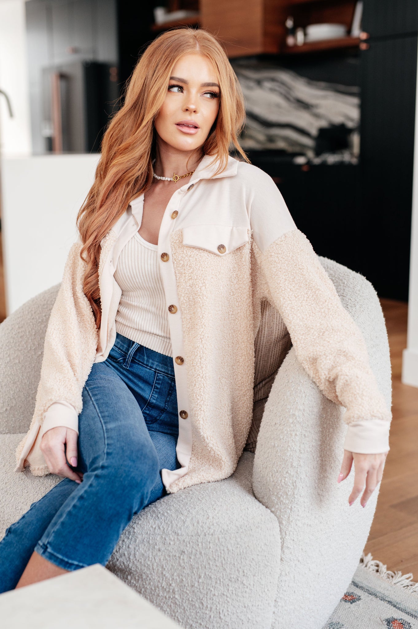 Wrap yourself in endless potential with our Endless Potential Sherpa Shacket! Made from cozy sherpa fleece and jersey knit, this shacket features a collared neckline and adorable faux pockets. Get ready to rock your look with this versatile and stylish piece!