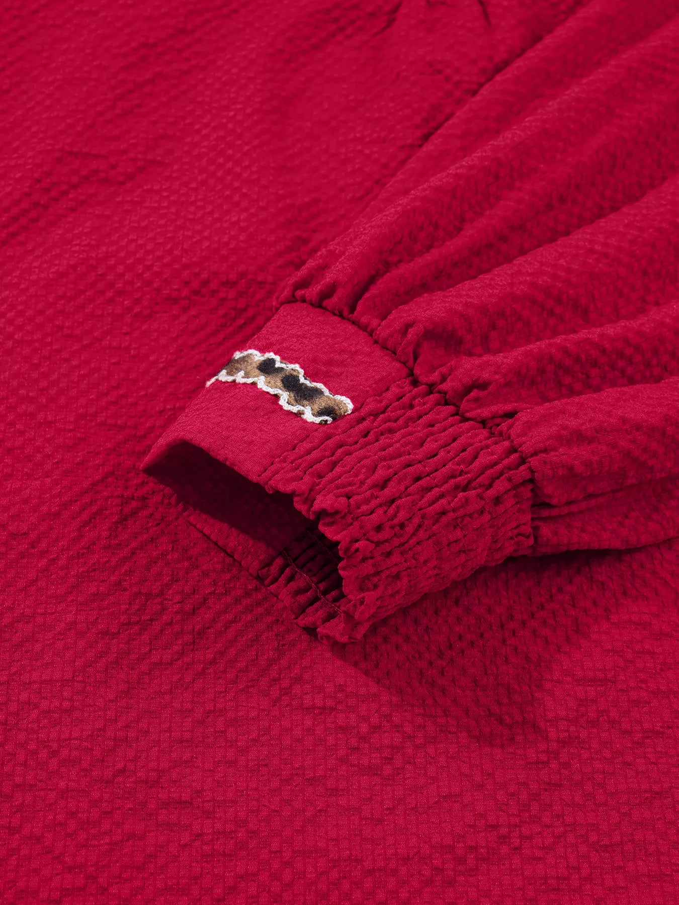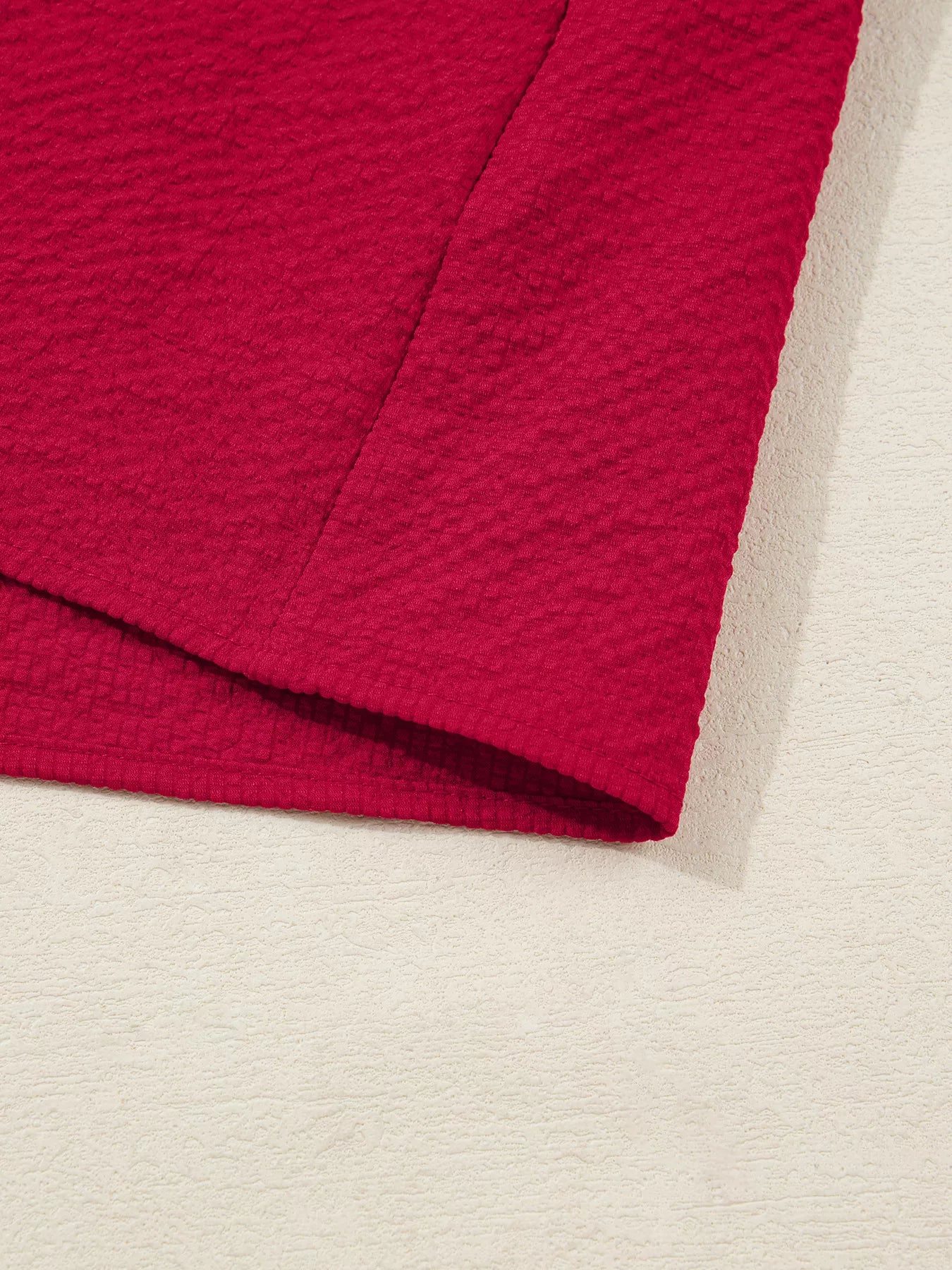Make every entrance a statement with the Crimson Gala Blouse. This is your secret weapon for looking flawlessly chic, instantly. Crafted in a velvet-rich red that catches every eye, this top blends effortless comfort with show-stopping sophistication.