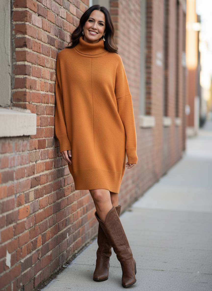 Wrap yourself in cozy elegance with Autumn Hearth Oversized Turtleneck Dress! This effortless piece is your essential uniform for chilly days. It features a warm, slouchy turtleneck and a stylish drop shoulder that contributes to the ultra-relaxed, oversized fit. The comfortable knit includes subtle side pockets and a ribbed hem, adding structure and functionality. Made from a soft, slightly stretchy viscose blend, this dress pairs perfectly with knee-high boots or leggings for an instantly polished look. Available in multiple rich, seasonal colors!