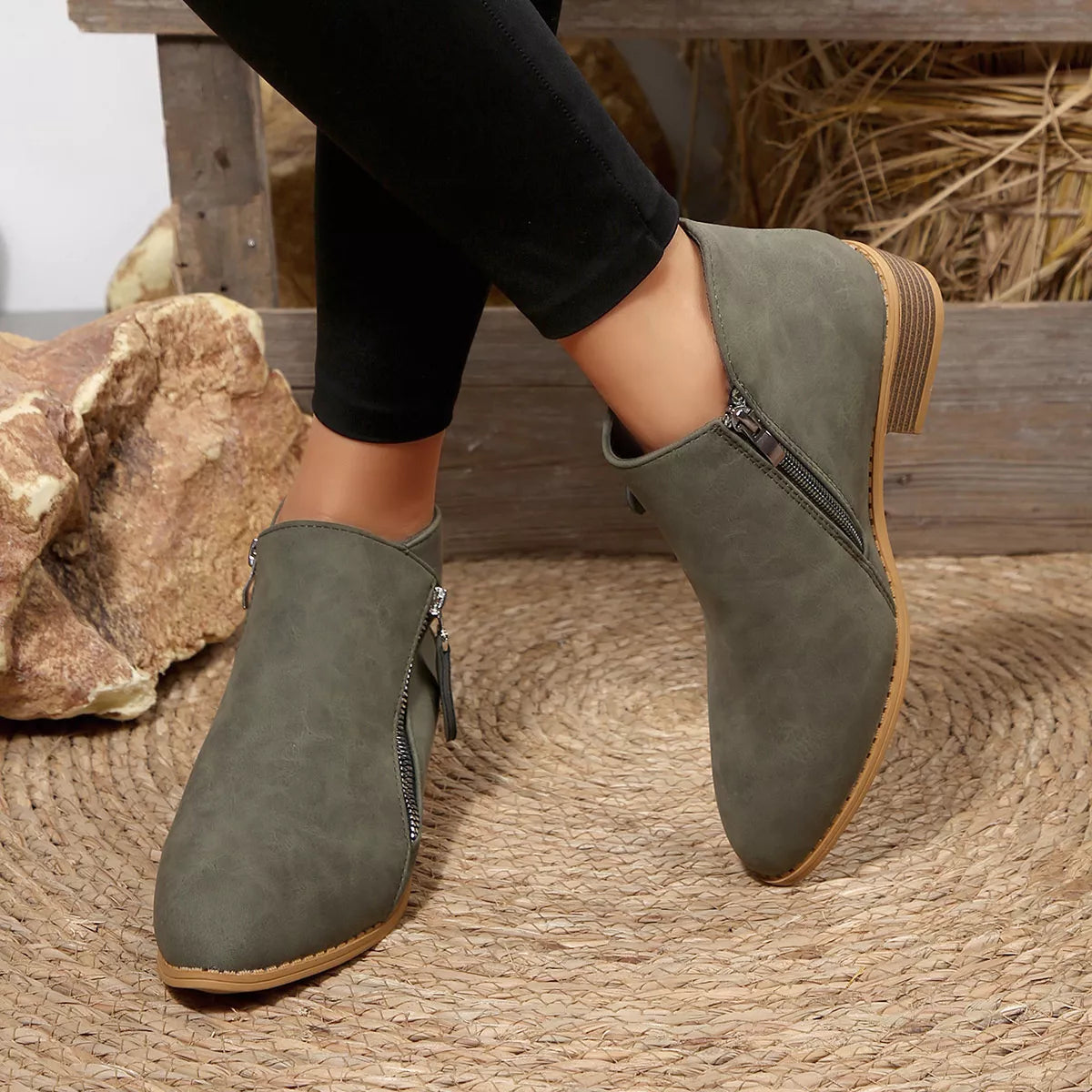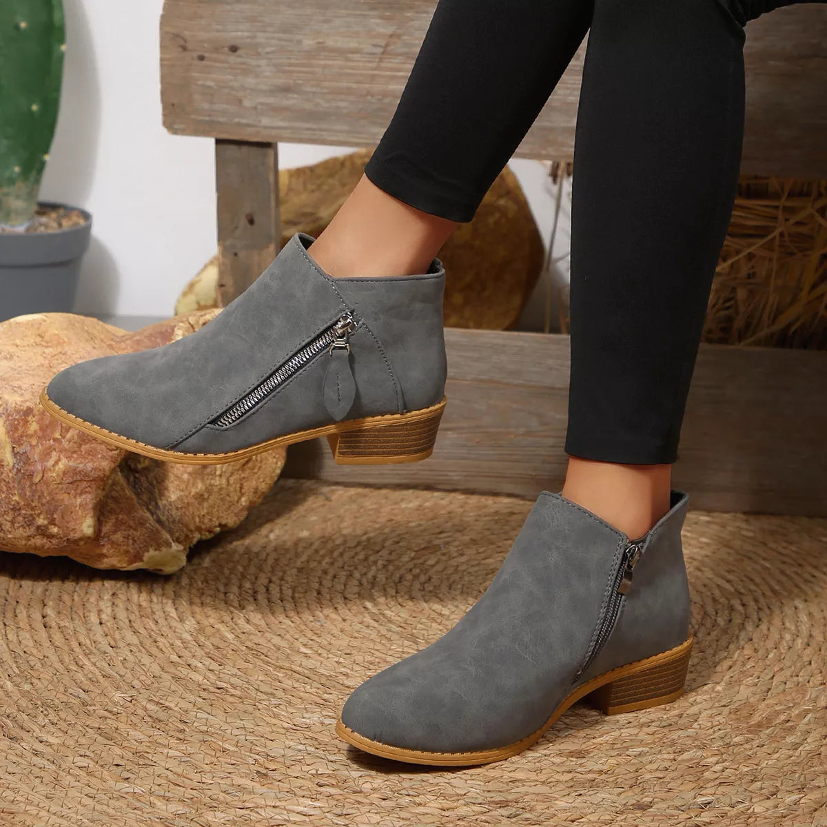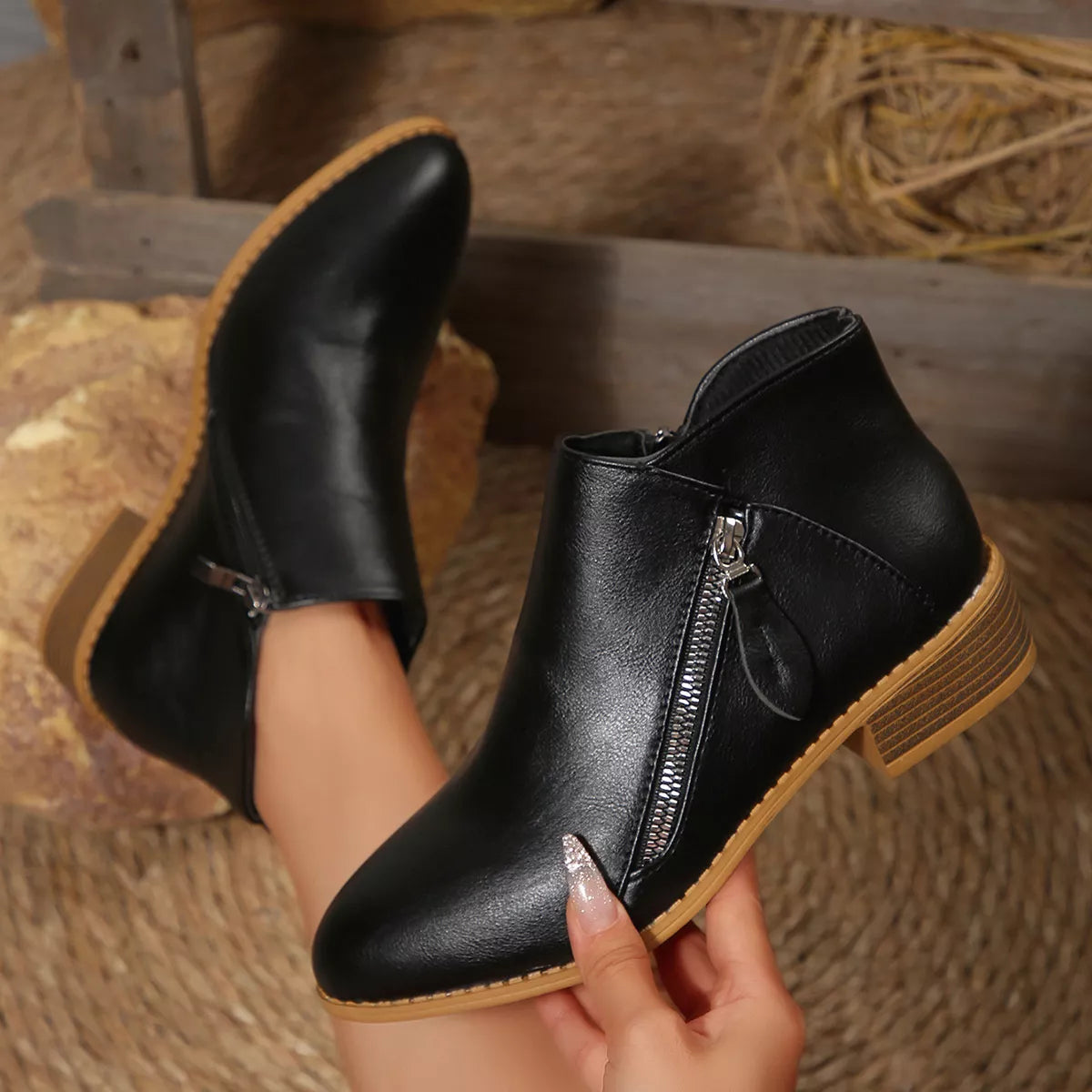 Crafted from premium PU Vegan Leather, these boots offer a sleek, refined look with an ethical twist. The low, sturdy block heel provides the perfect amount of lift ("Mid heels")—enough to elevate your look without the pain of a high heel. Plus, the rubber sole ensures reliable grip and durability.