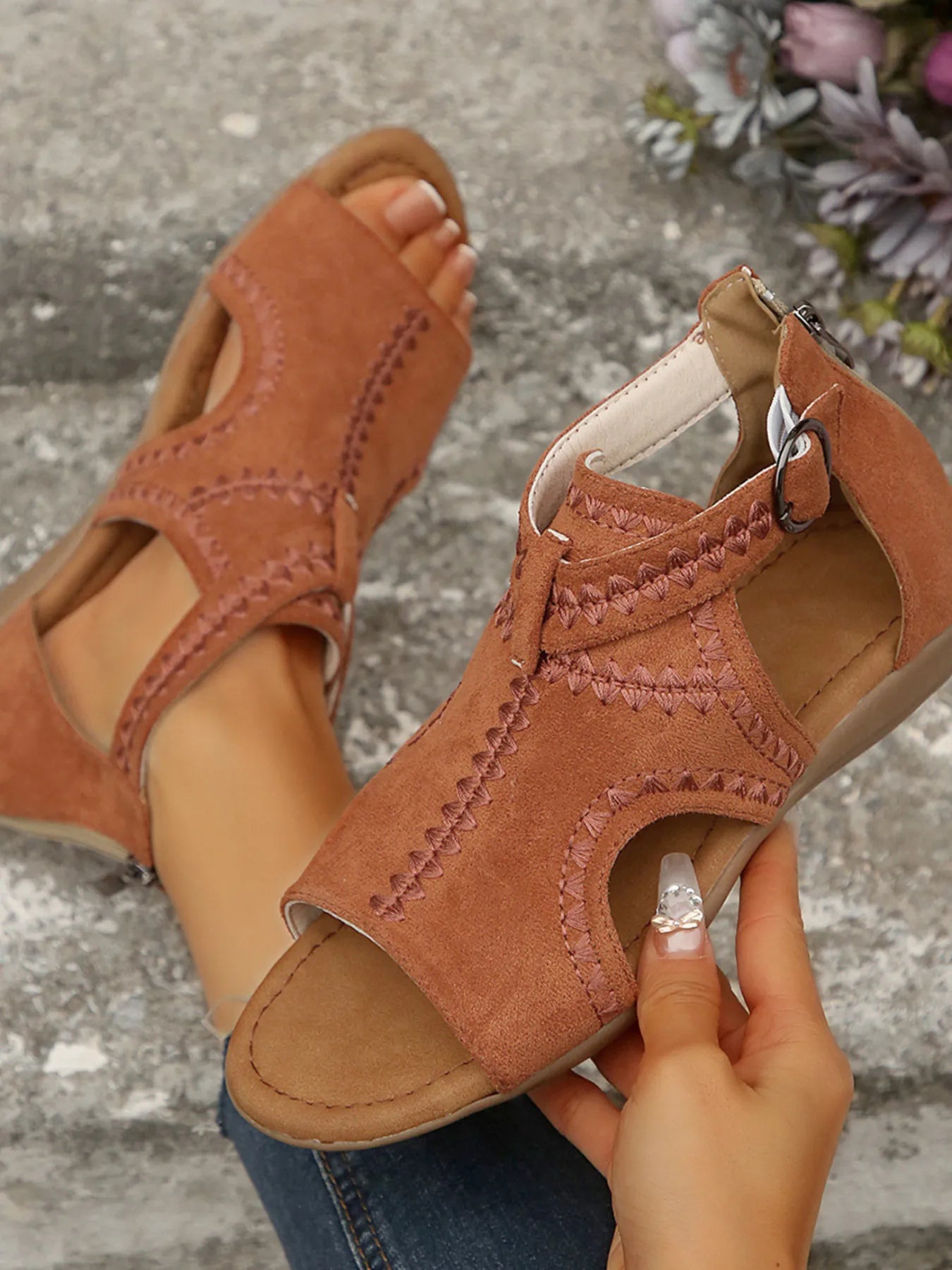 Step into sunshine with our Desert Breeze Cutout Open Toe Flat Sandals — your new go-to flats for easy, laid-back days. These open-toe sandals feature stylish cutout details and pretty stitched accents that add just the right touch of boho charm.