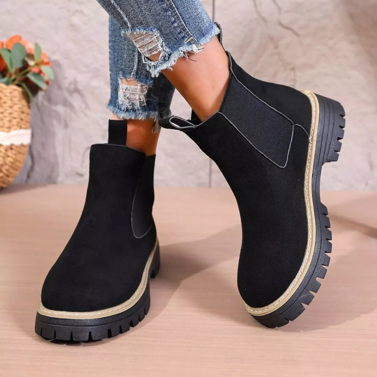These boots are designed to make a statement while providing serious comfort. The prominent platform and lug sole not only add height but also offer superior grip, making them perfect for navigating cold, wet winter weather. The round toe keeps the fit roomy and comfortable.