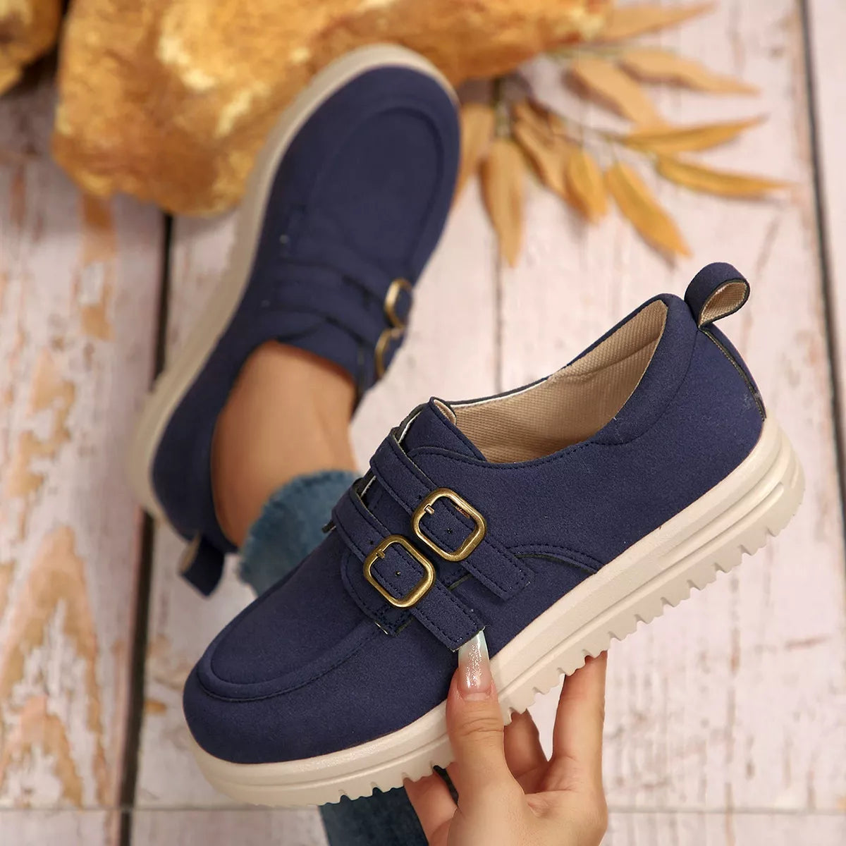 Elevate your daily movement with a pair that blends vintage-inspired character with modern boutique ease. The Nomad Spirit Loafers are expertly crafted from premium PU vegan leather, featuring a soft-touch, matte finish that feels as good as it looks. This versatile flat silhouette is defined by its unique double buckle accent across the vamp, offering a curated, artisanal edge to your footwear rotation. Built on a durable, high-traction rubber sole with a distinct ridged edge, these loafers provide steady, all-day comfort whether you're navigating city streets or relaxing on the weekend.