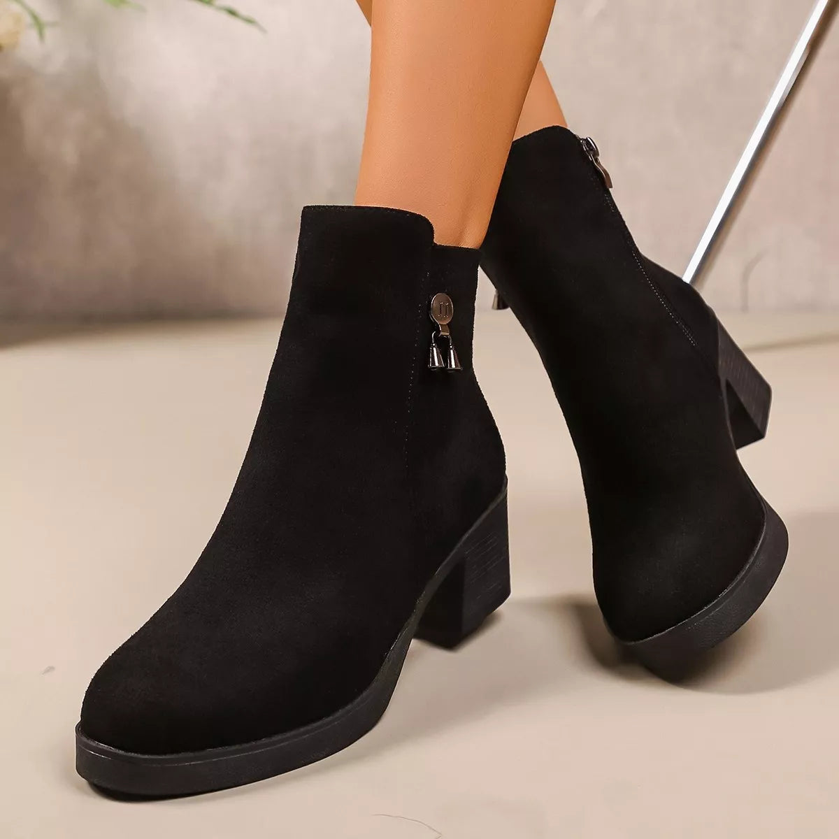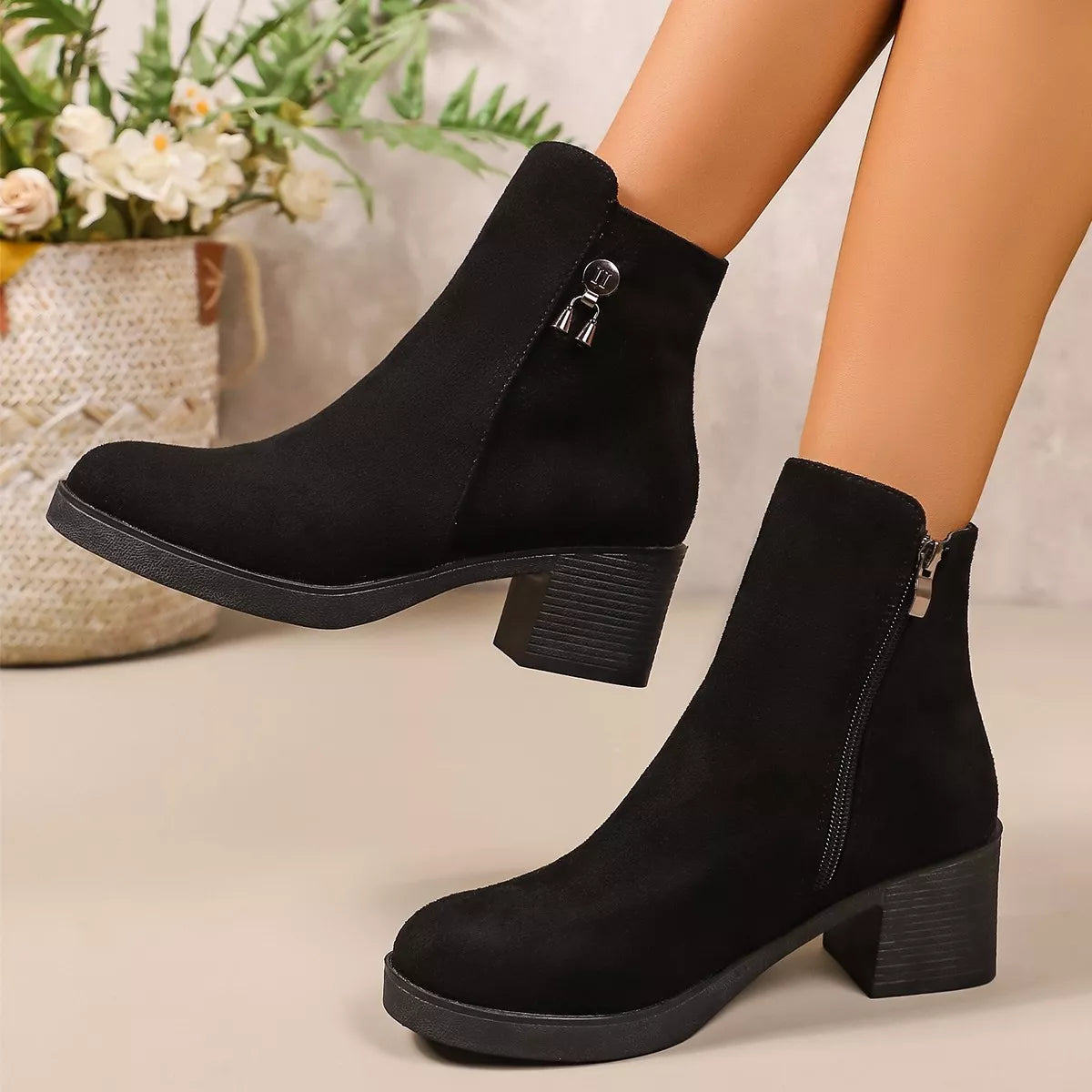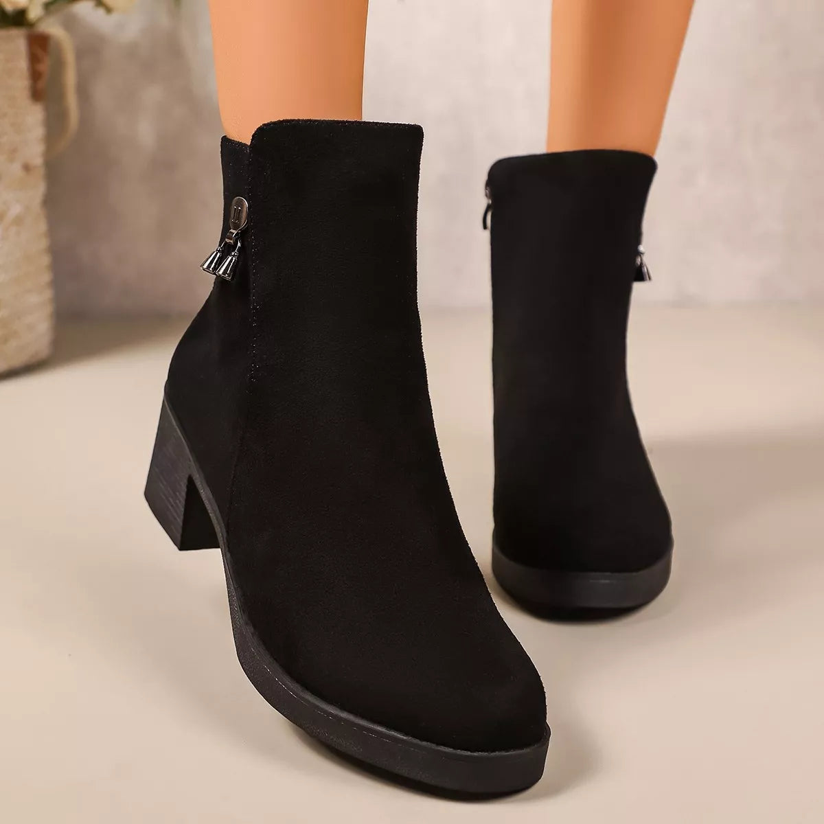 Step into a world of understated luxury with these sleek and versatile ankle boots. Crafted with a premium suede finish, these boots offer a rich, velvety texture that adds a sophisticated touch to any daytime or evening look. The elegant pointed-toe design elongates the silhouette, while the stable low block heel provides just the right amount of lift without sacrificing comfort. A discrete side zipper allows for an effortless, tailored fit, making these the perfect go-to for your busiest days.