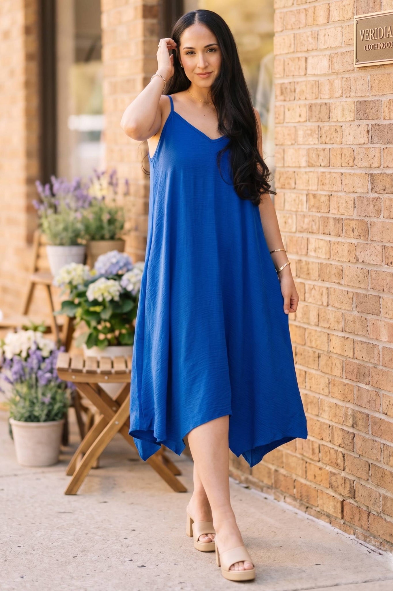 Soar in style with the Blue Skies Dress! With its vibrant color and trendy design, you'll be the talk of the town. Its lightweight fabric makes it perfect for any summer event. Take your wardrobe to new heights with this playful and stylish dress.