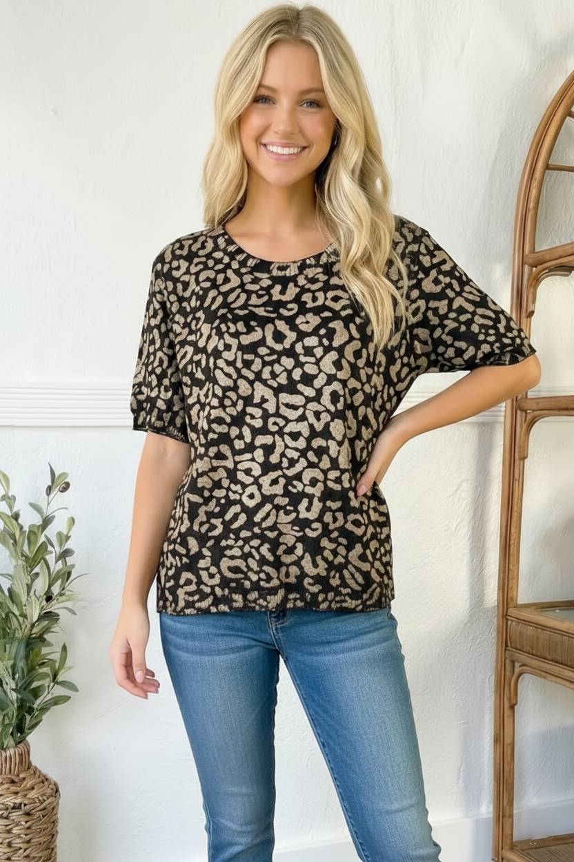 Bring a touch of playful edge to your everyday style with this leopard print top. Designed with a relaxed fit and soft, lightweight feel, it’s easy to wear and flattering on all body types. The short sleeves and classic neckline make it perfect for warm days or layering under your favorite jacket. Pair it with denim shorts, jeans, or a casual skirt for an effortless look that’s bold, comfortable, and endlessly wearable.