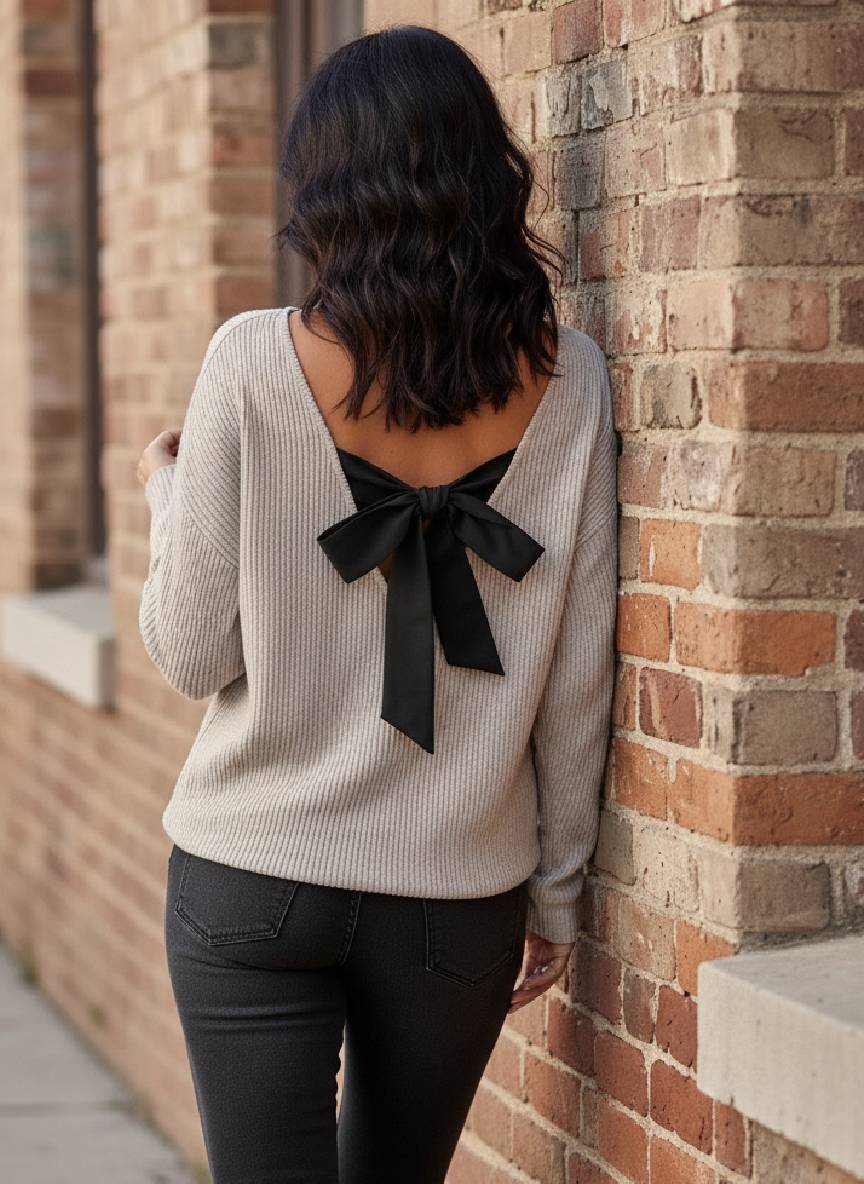 Turn every exit into a memorable one with a top that blends classic texture with a surprising, feminine flair. The A Moment in Time Knit features a sophisticated ribbed construction that creates a sleek, body-skimming silhouette. While the front offers a timeless and modest look, the back reveals a dramatic, deep V-cut anchored by a statement satin bow. Designed with comfortable long sleeves and a hint of stretch, this top is perfect for those who want to add a touch of poetic romance to their everyday ensemble.
