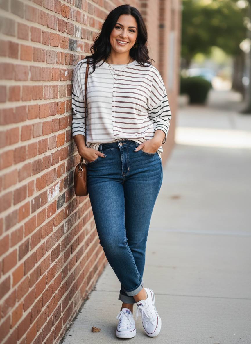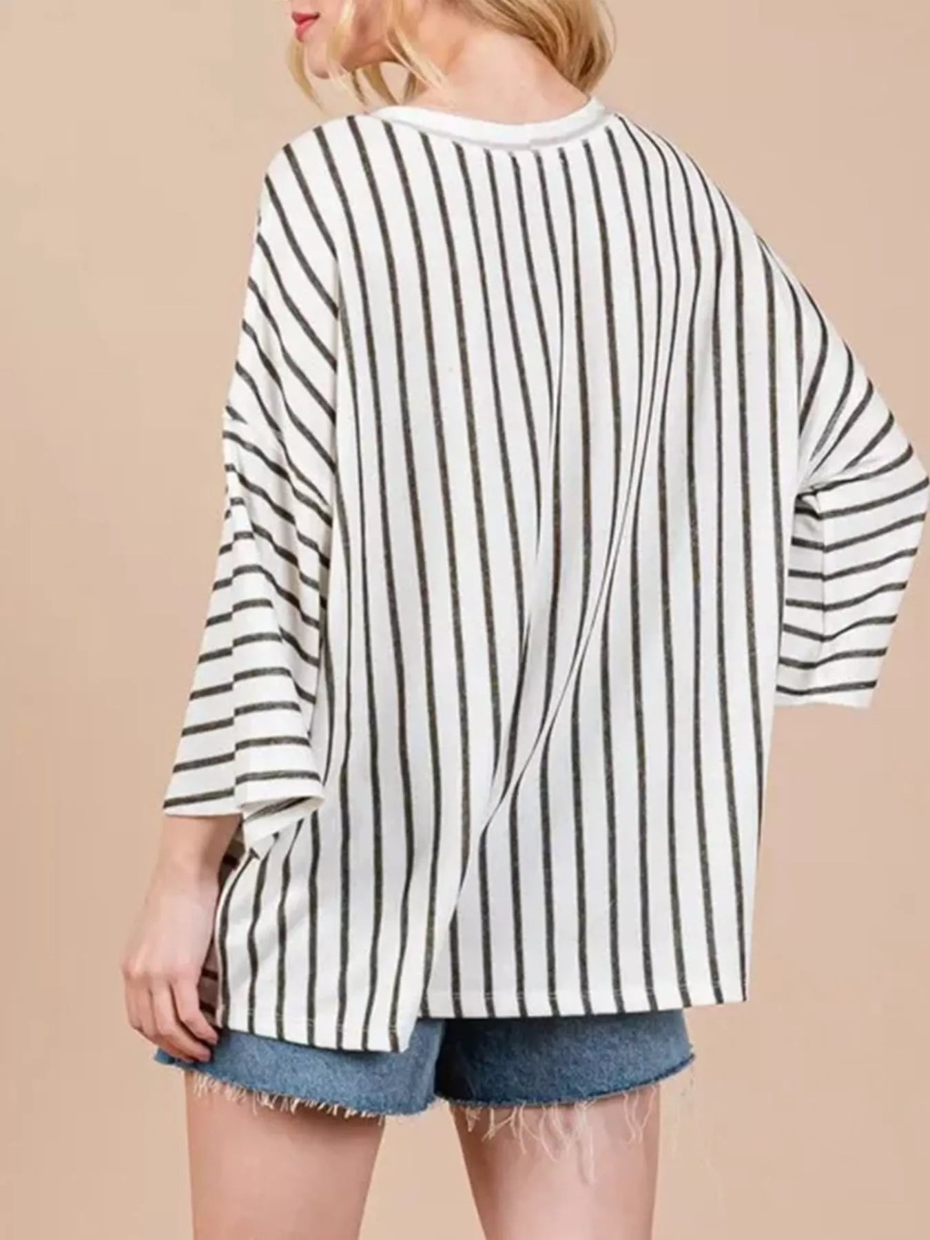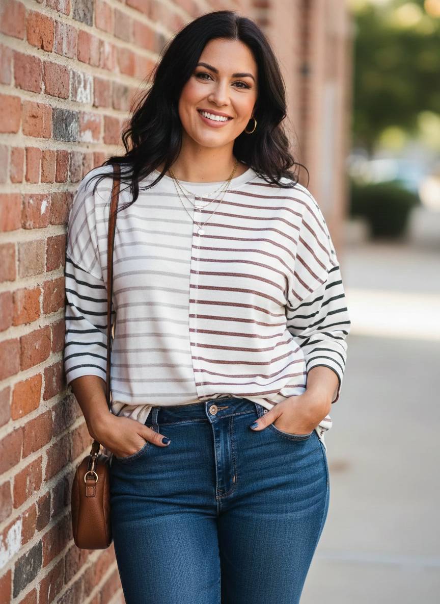 The Linear Logic Top features a sophisticated color-block construction that masterfully mixes thin and bold stripes in contrasting horizontal and vertical layouts. This architectural pattern play creates a slimming, dynamic effect that is both modern and incredibly easy to wear. Designed with a relaxed, loose fit and classic 3/4-length sleeves, it offers a refined silhouette that bridges the gap between casual comfort and polished style. Crafted from a soft, durable blend, it provides a beautiful drape that stays crisp from your morning coffee run to a late afternoon meeting.