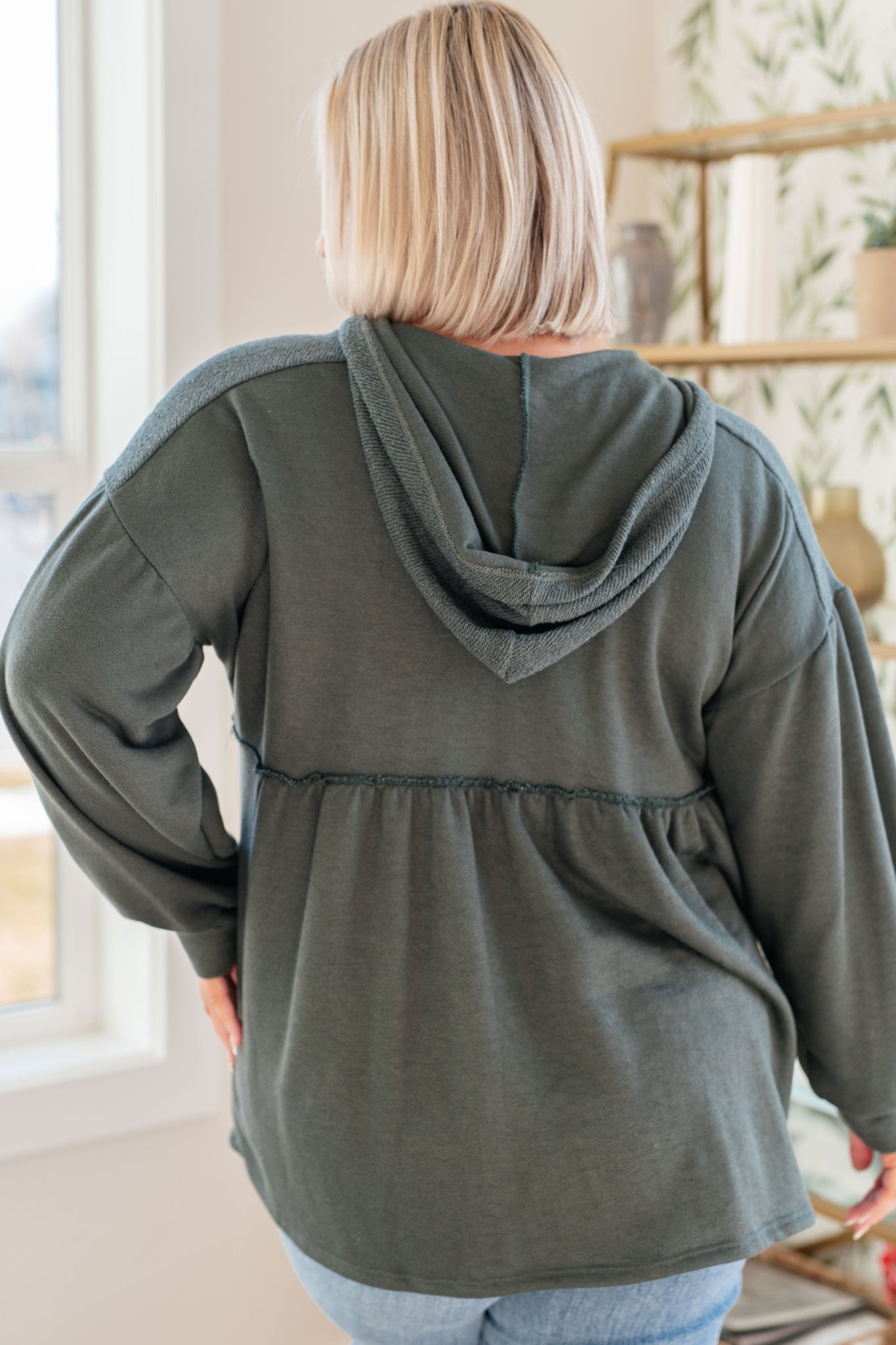 Stay effortlessly stylish with our She's Not Wrong Hooded V-Neck Pullover. Made of cozy French terry, this pullover features a flattering hooded V-neckline, a gathered peplum, and playful balloon sleeves. Perfect for a casual yet chic look.