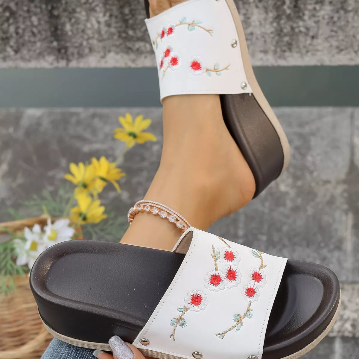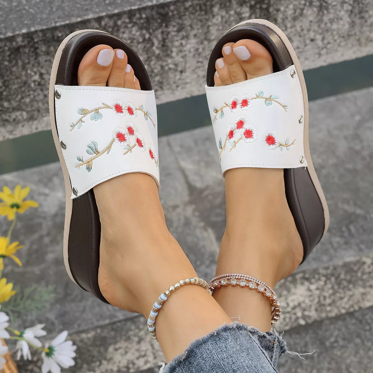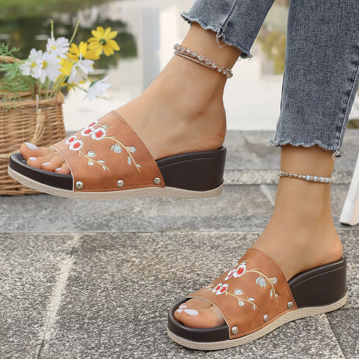 Step into a world of artisanal charm and effortless comfort. These Floral Embroidered Wedge Sandals are designed for the woman who loves a touch of traditional craftsmanship paired with a modern, walkable silhouette. Featuring intricate floral embroidery across the single-strap upper, these wedges bring a soft, botanical energy to your every step.