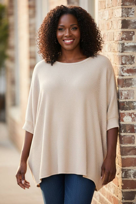 Cozy Cloud Whisper Slouch Tunic in Sand Beige