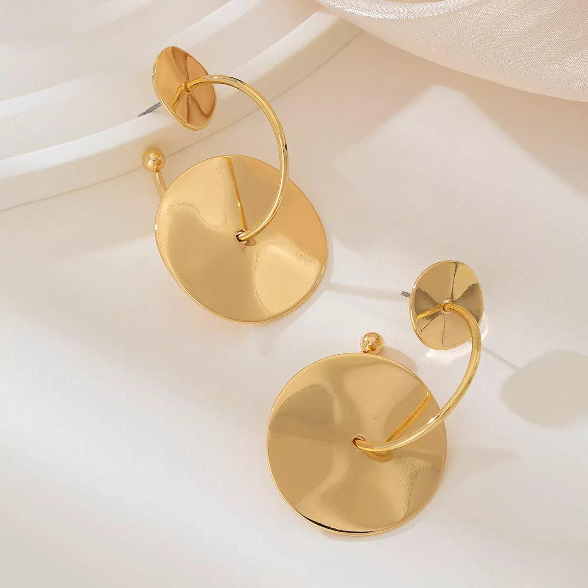 Sleek, sculptural, and endlessly chic — the Modern Muse Drop Earrings bring bold sophistication to any look. Featuring polished circular drops suspended from delicate hoops, they strike the perfect balance between artful design and timeless elegance.