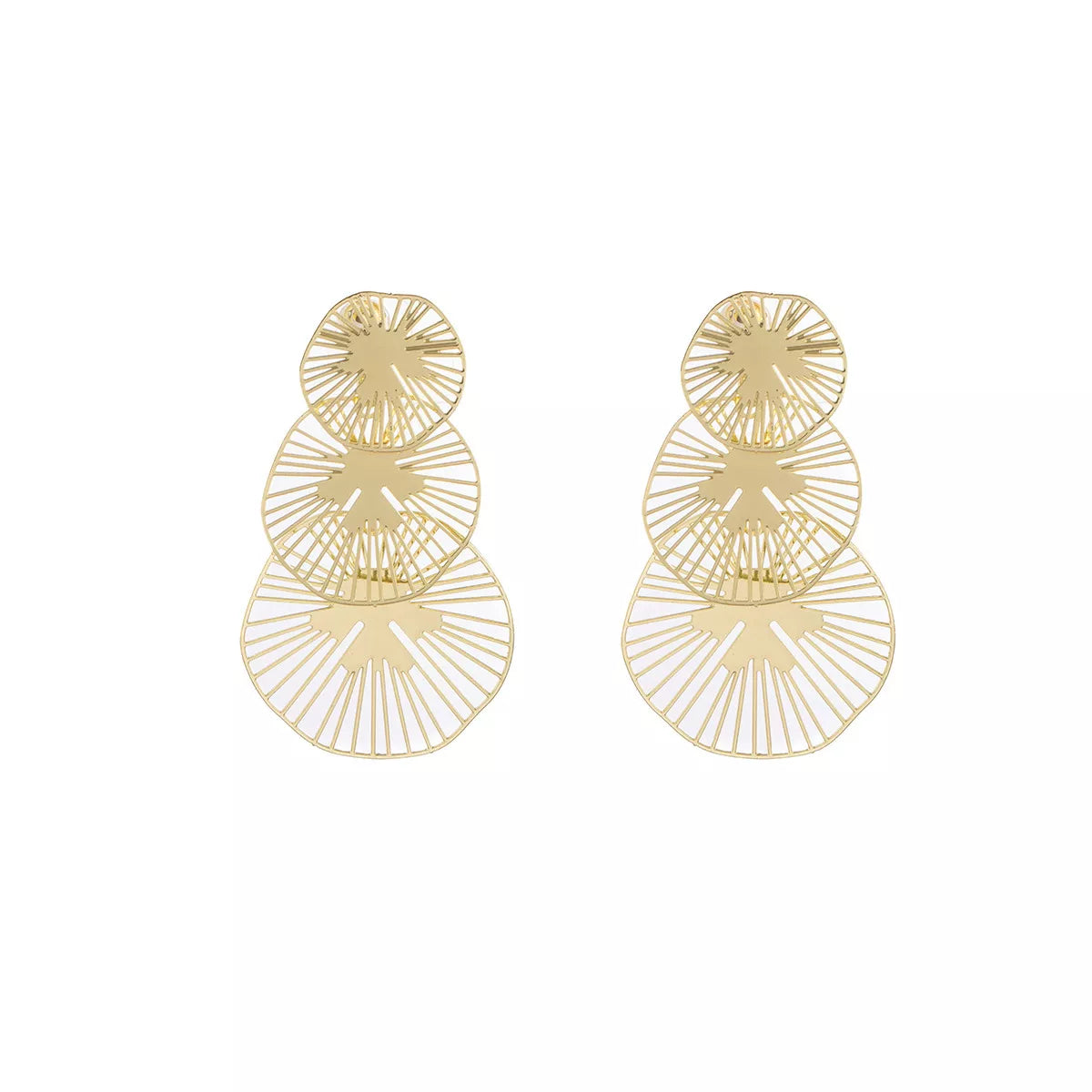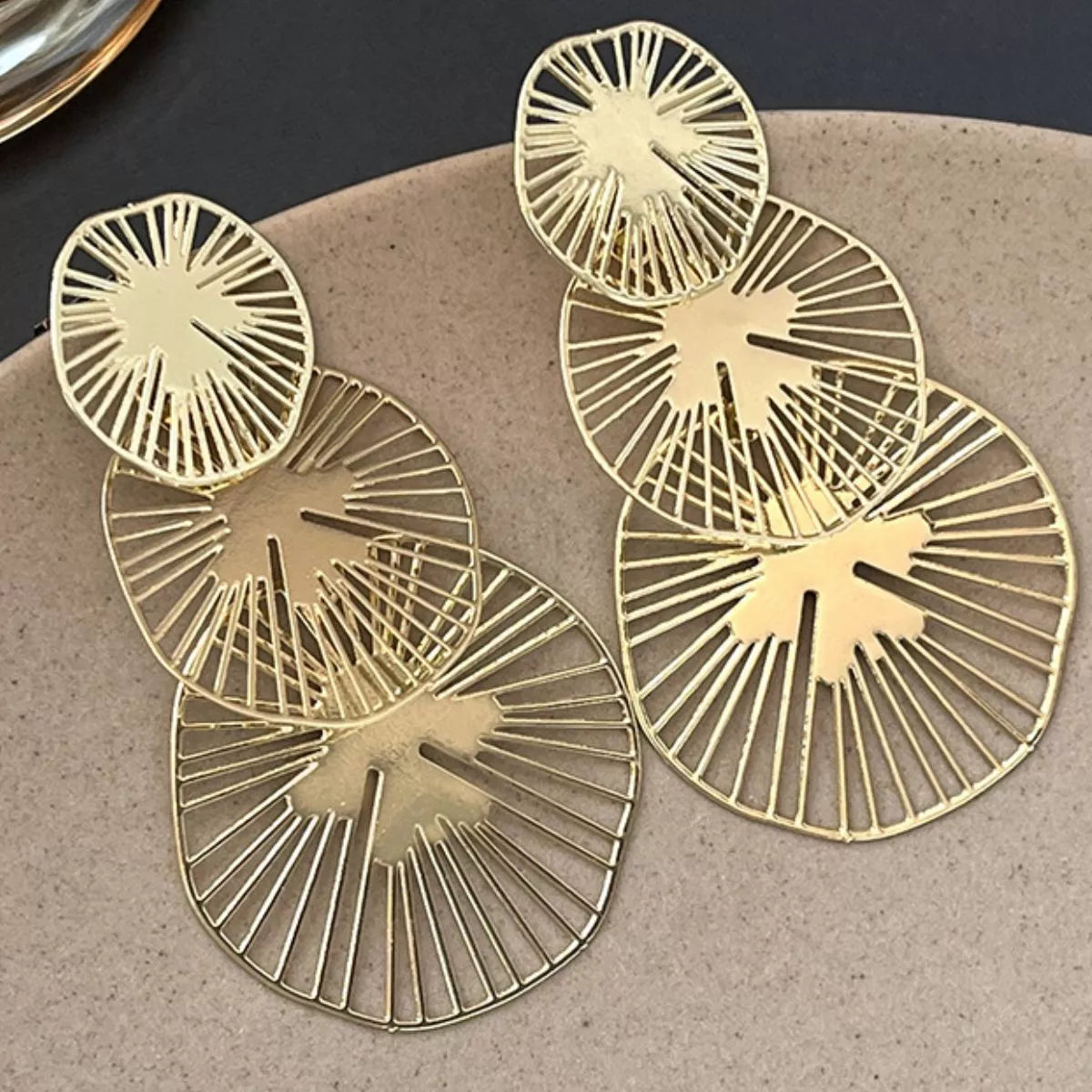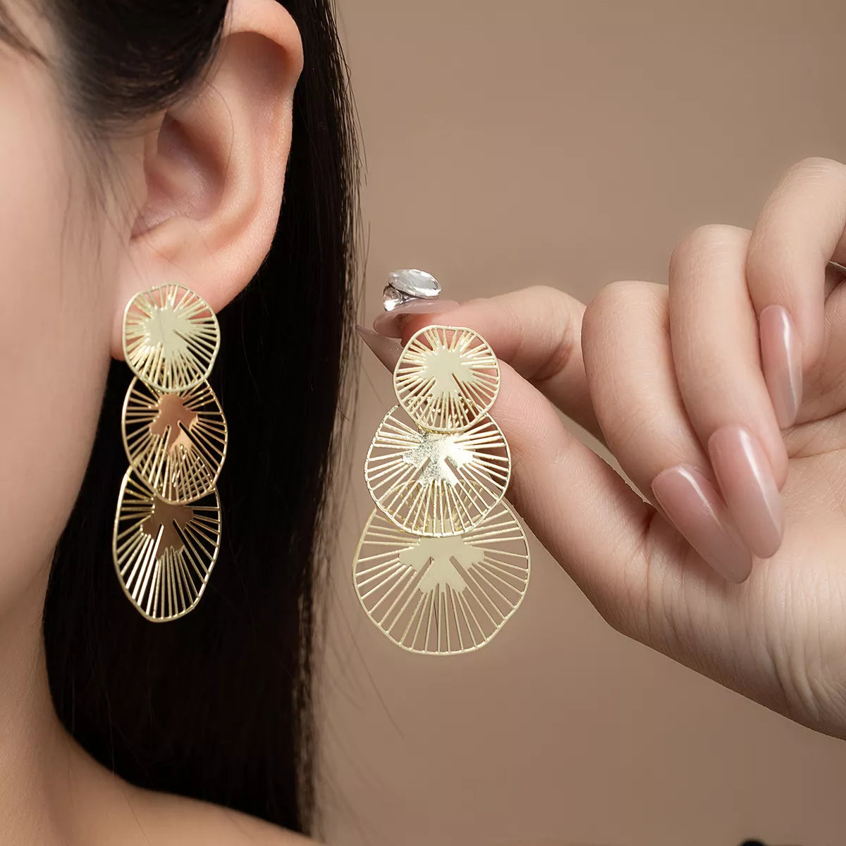 Modern, bold, and effortlessly chic — the Radiant Geometry Earrings are designed to make an impression. Crafted with a sleek 18K gold-plated finish, their cascading geometric discs catch the light beautifully with every move, adding instant glamour to any look.