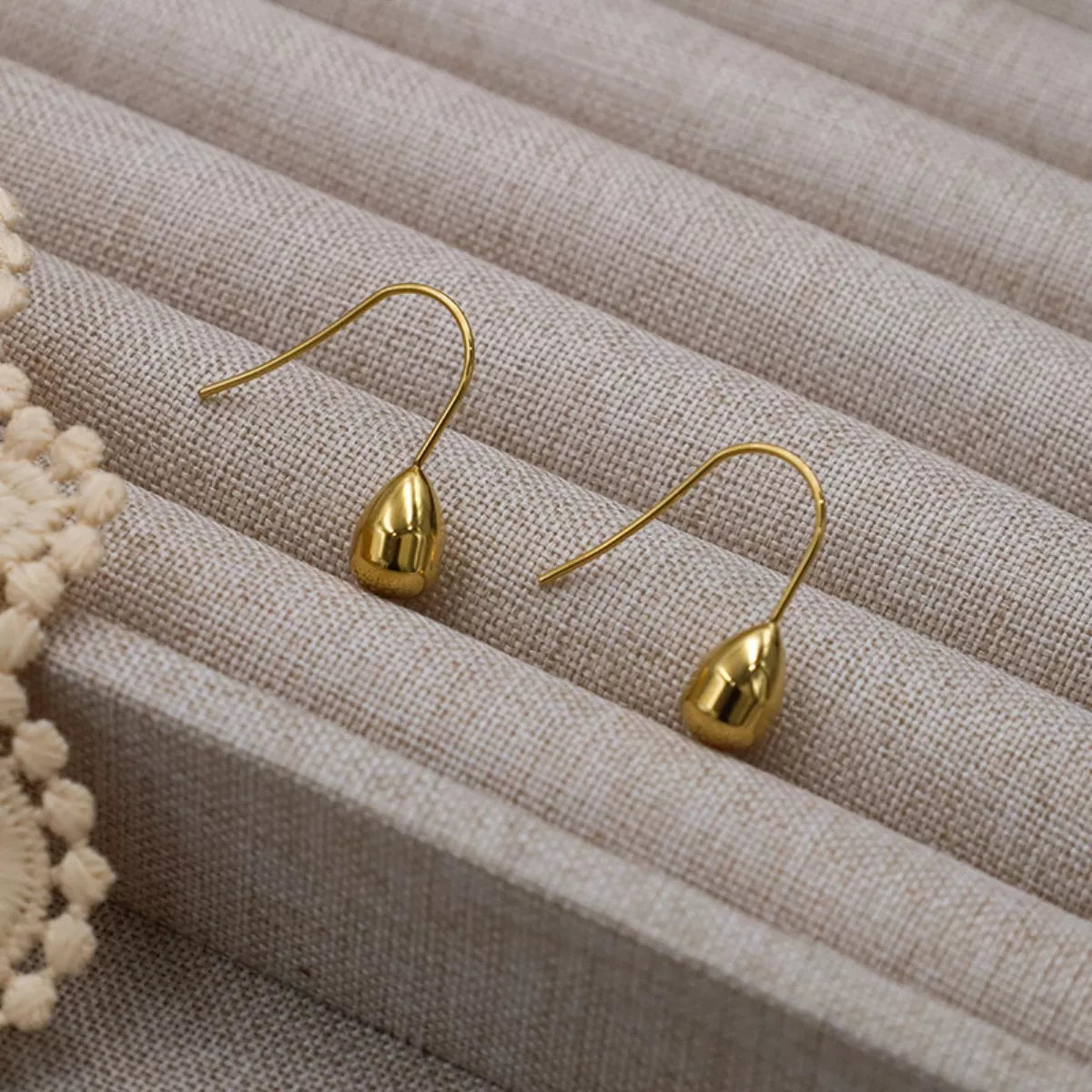Capture the quiet elegance of a winter sunrise with a pair that radiates minimalist boutique charm. The Morning Dew Teardrop Earrings feature a sleek, high-shine sculptural design that mimics the fluid beauty of a single droplet. These versatile hooks are perfect for adding a touch of sophisticated light to your favorite chunky knits or a polished office ensemble. Expertly crafted with a durable titanium steel base and a genuine 18K gold-plated finish, these earrings offer a luxe, tarnish-resistant glow that feels weightless for all-day wear.