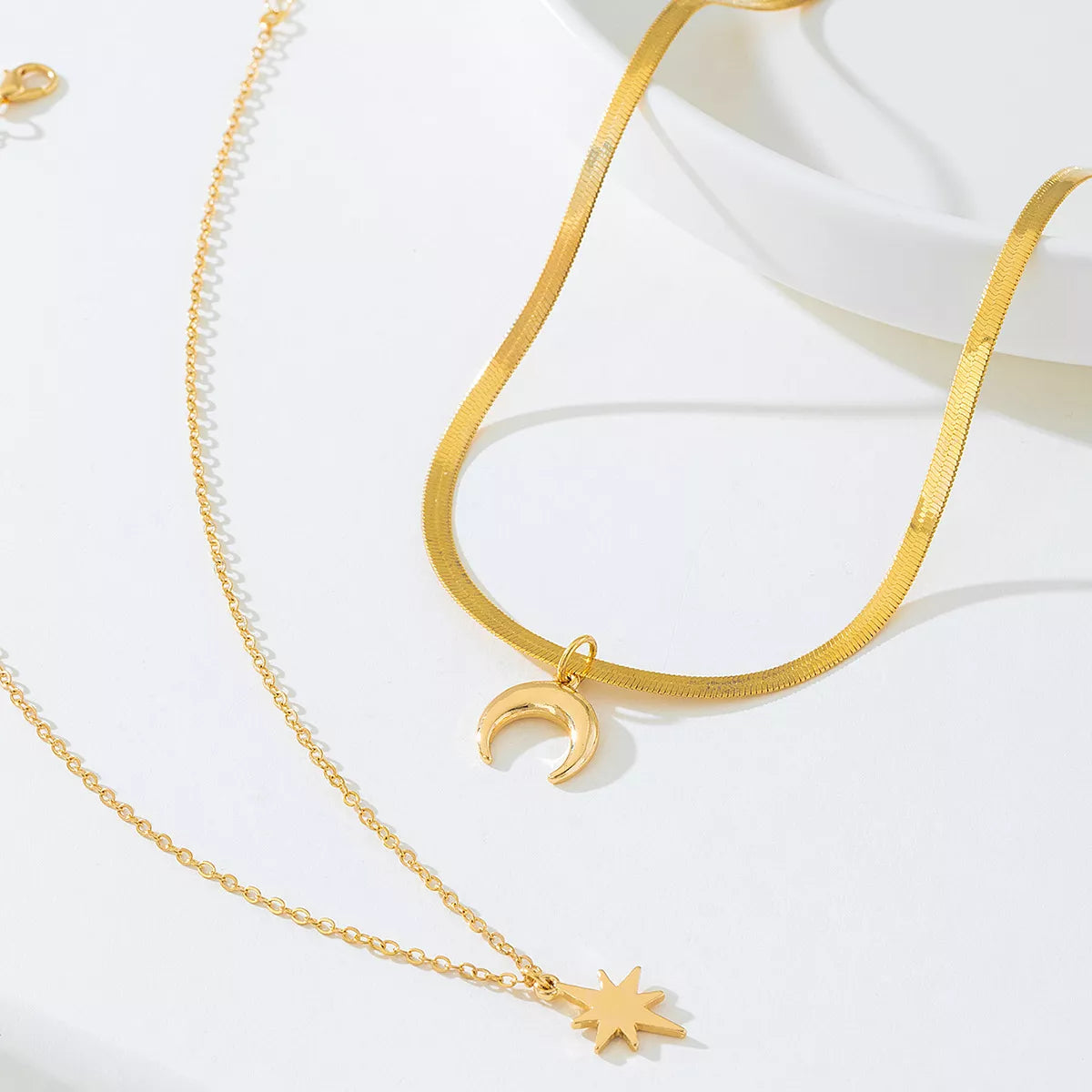 Channel your inner star with the Celestial Glow Necklace Set — a dreamy duo featuring a radiant star and crescent moon pendant. Each layer captures effortless elegance, blending modern minimalism with celestial charm.