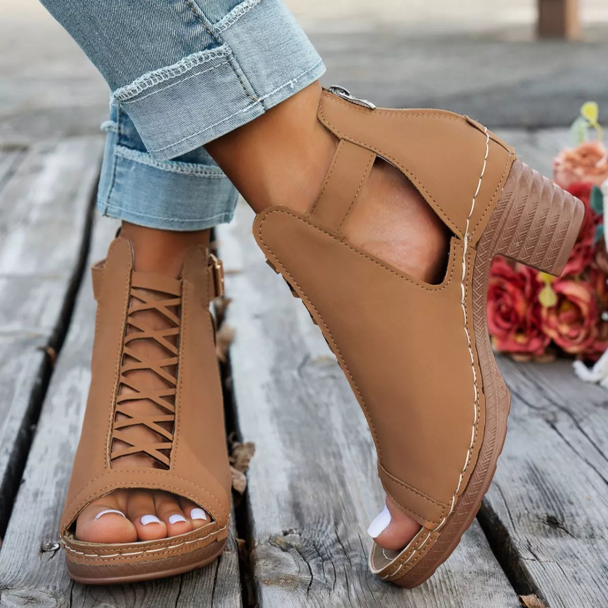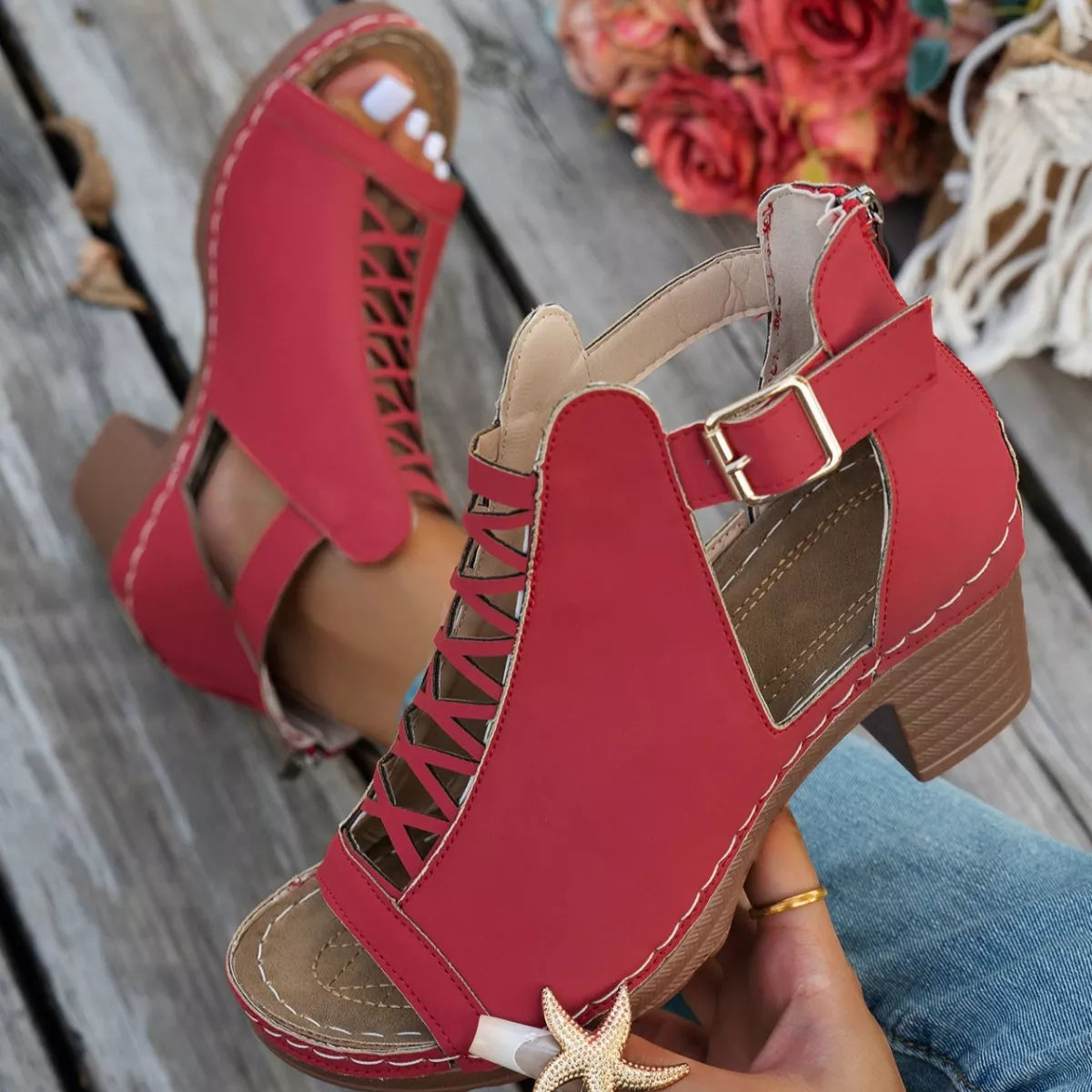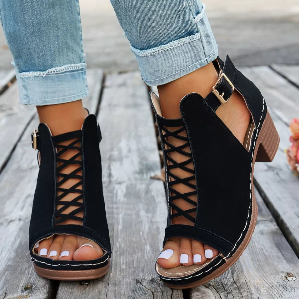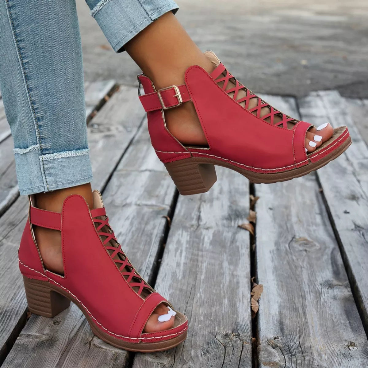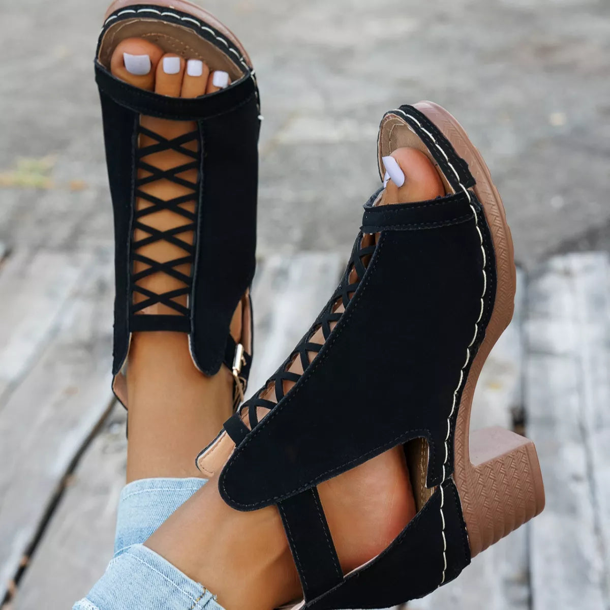Elevate your presence with a statuesque footwear essential designed for high-end boutique style and effortless transitions. The Urban Uplift Sandals feature a bold, cage-style silhouette with intricate lace-up detailing, offering a curated aesthetic that adds a "next level" edge to your seasonal rotation. This contemporary design is defined by its polished gold-toned buckle and architectural frame, providing a spirited boutique vibe for everything from brunch dates to evening social gatherings. Crafted from premium PU vegan leather, these sandals deliver a high-fashion handle with a sophisticated, muted finish.