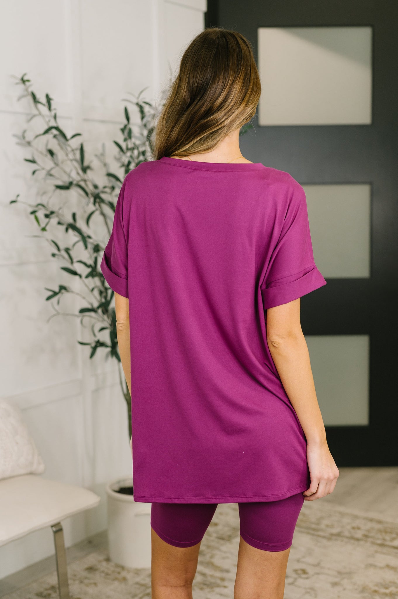Get ready to feel buttery soft in our V-neck bike short set! Made with lightweight brushed microfiber for ultimate comfort. The banded V-neckline and dolman sleeves add a touch of style, while the cuffed and tacked sleeve cuffs and side slits provide practicality and fun. This set will surely be your go-to choice.