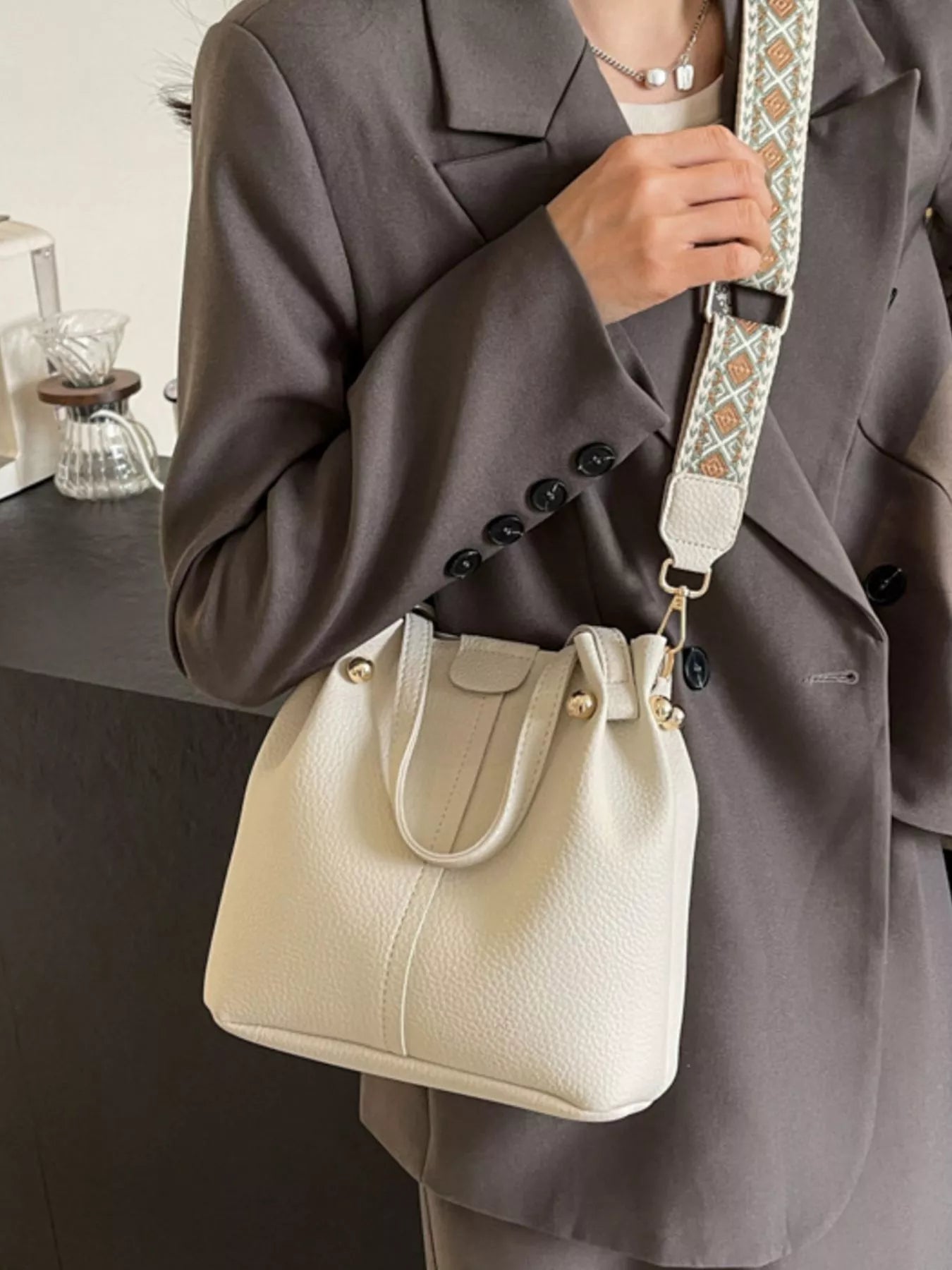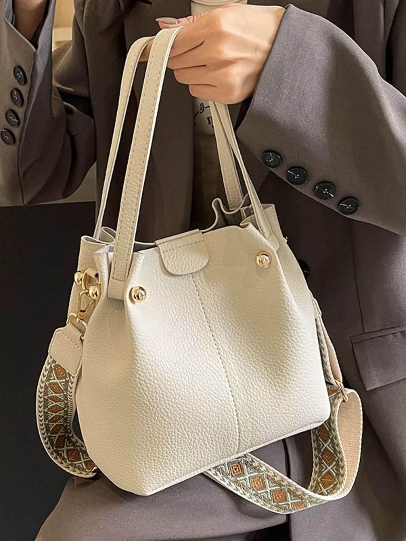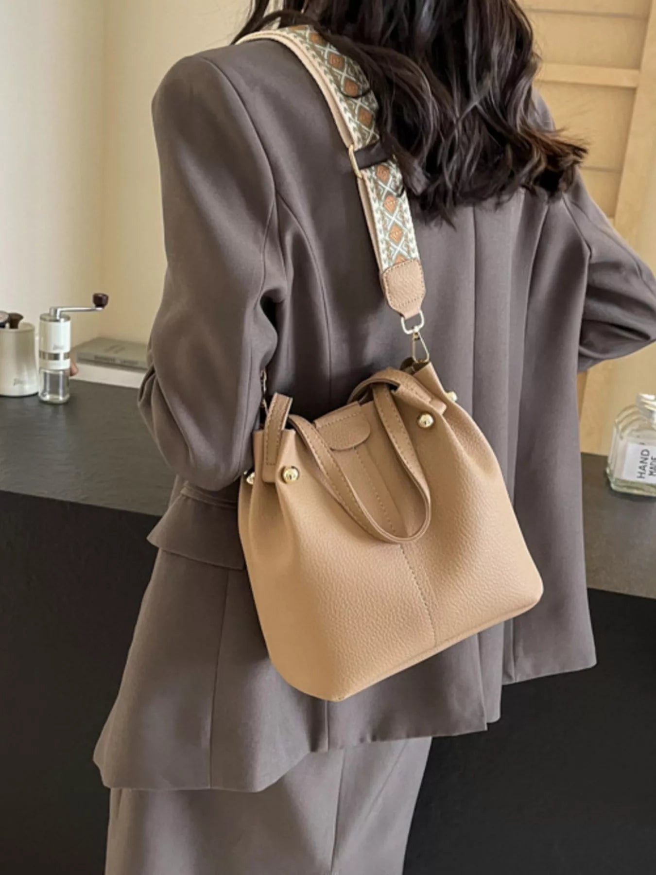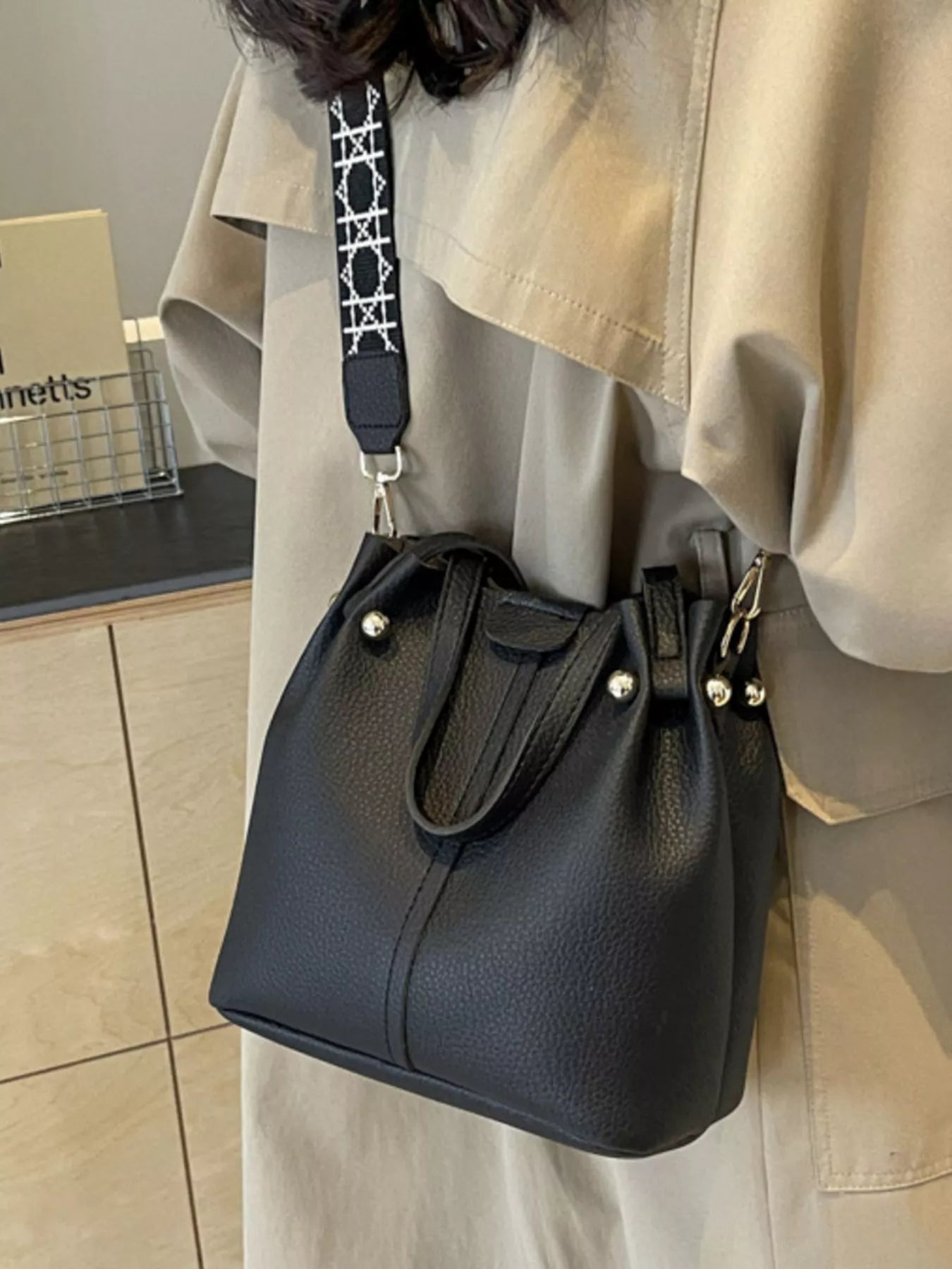This is the bag that proves you don’t have to choose between "fashion-forward" and "functional." The Saturday Social Crossbody features a soft, pebbled vegan leather body in a modern bucket-style silhouette that feels incredibly high-end. We are head-over-heels for the statement guitar-style strap—it features a gorgeous geometric pattern that adds an instant pop of artisanal texture to any outfit. Whether you’re carrying it by the slim top handles for a polished boutique look or throwing it over your shoulder for a hands-free afternoon, this bag is designed to keep up with your busiest social calendar.