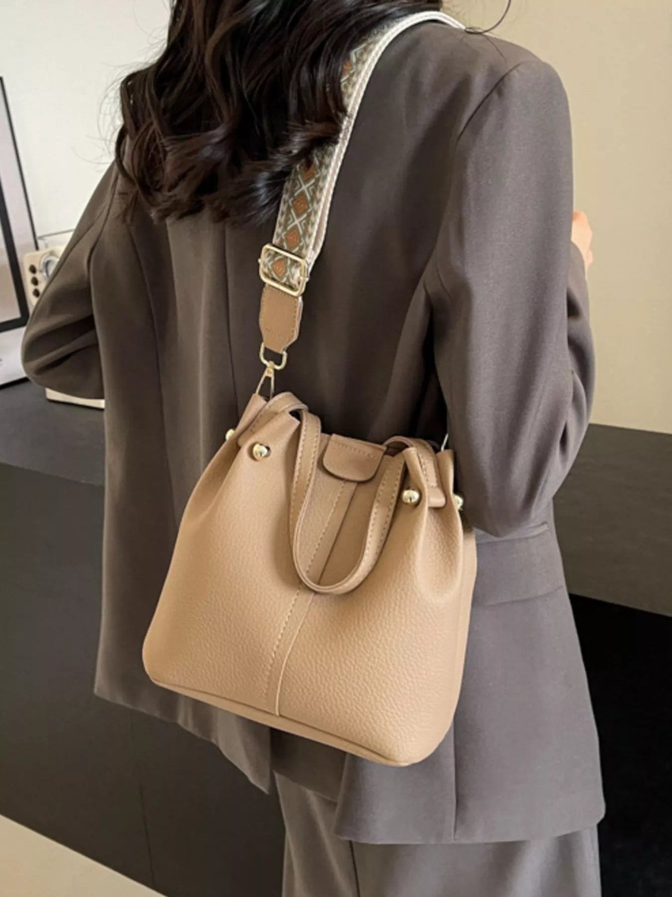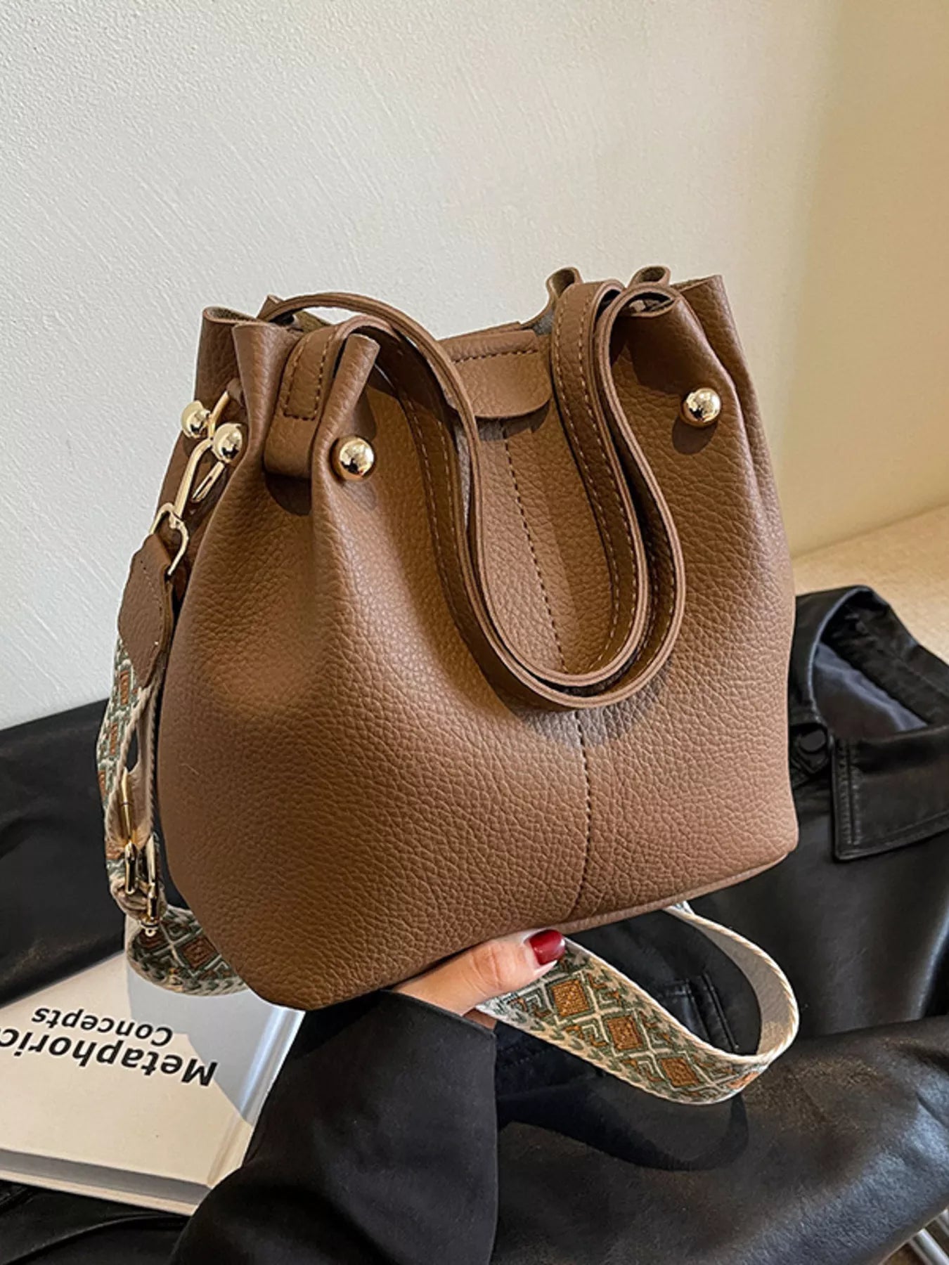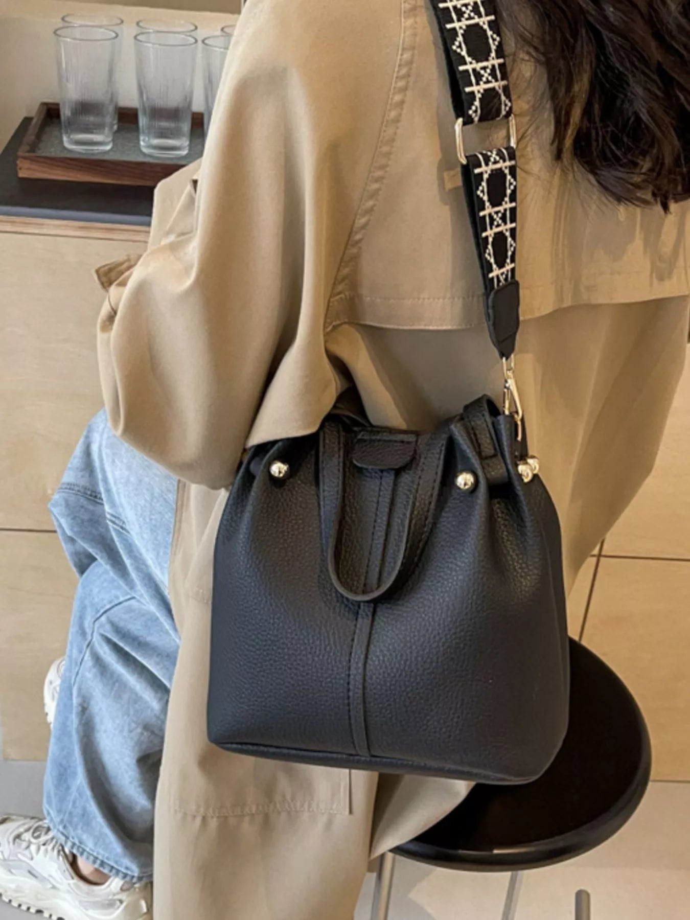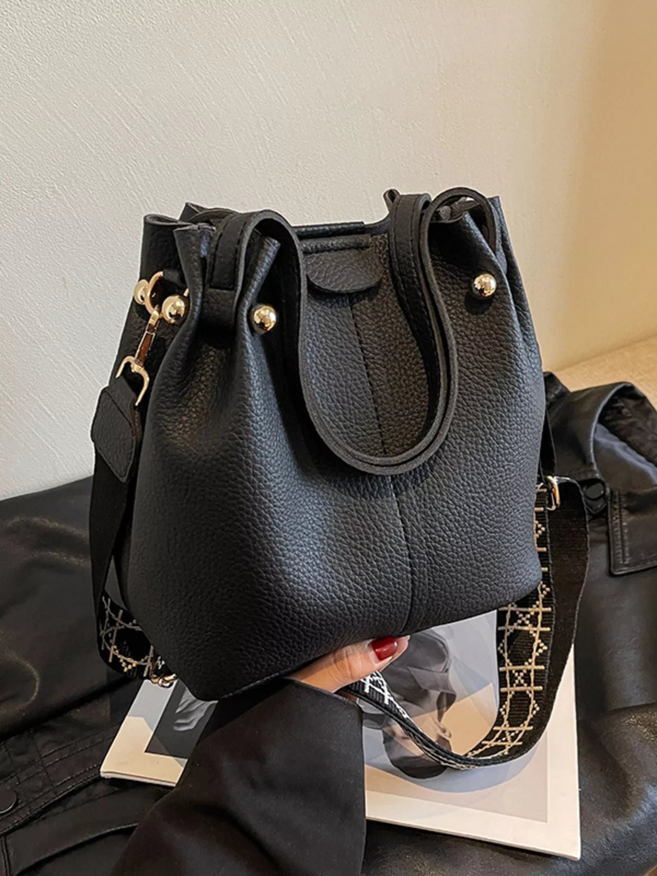 This is the bag that proves you don’t have to choose between "fashion-forward" and "functional." The Saturday Social Crossbody features a soft, pebbled vegan leather body in a modern bucket-style silhouette that feels incredibly high-end. We are head-over-heels for the statement guitar-style strap—it features a gorgeous geometric pattern that adds an instant pop of artisanal texture to any outfit. Whether you’re carrying it by the slim top handles for a polished boutique look or throwing it over your shoulder for a hands-free afternoon, this bag is designed to keep up with your busiest social calendar.