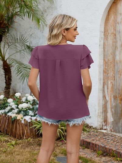Cutout Round Neck Short Sleeve Blouse (multiple color options)