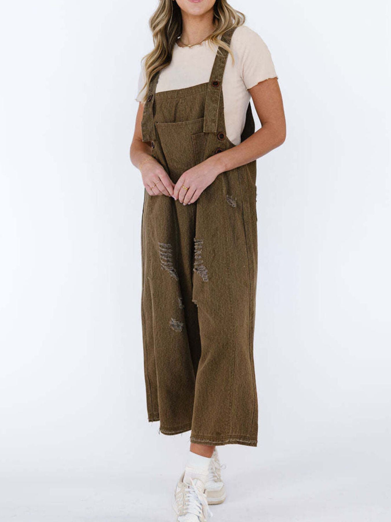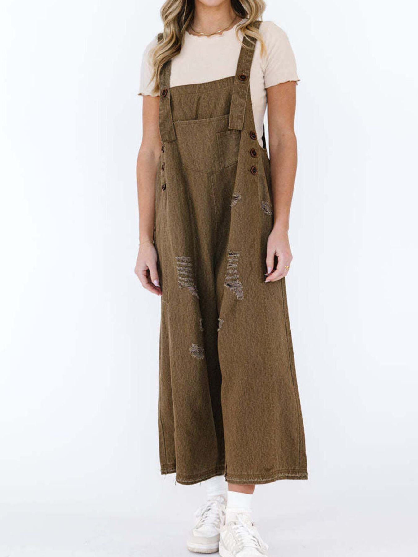 Retro Renegade Wide Leg Distressed Overalls (multiple color options)