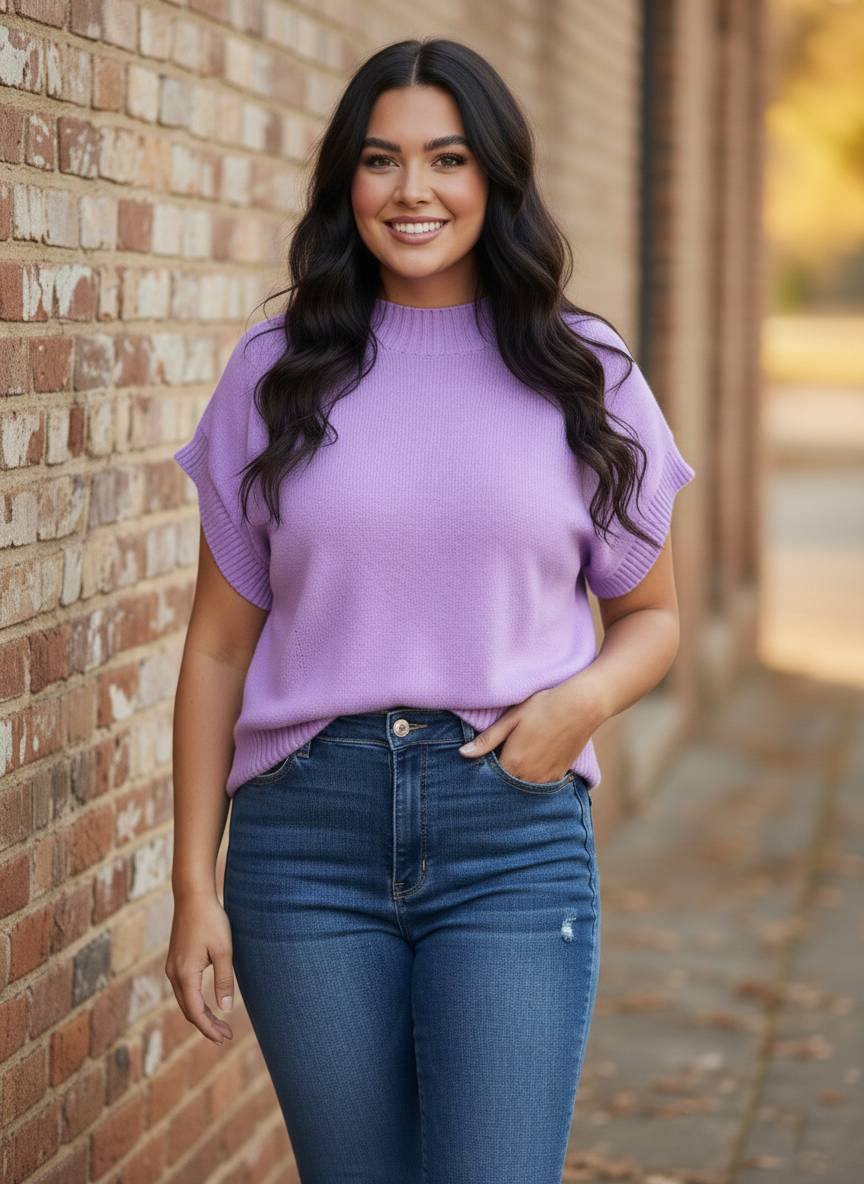 Minimal effort, maximum polish—The Modern Muse Sweater Tee is the elevated essential your wardrobe has been waiting for. Designed with a flattering mock neckline, wide short sleeves, and soft, breathable knit, this piece effortlessly bridges the gap between casual and chic.