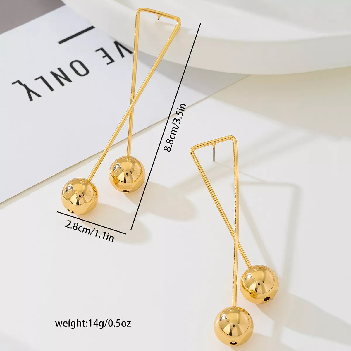 Bold, modern, and artfully sleek — the Sculpted Motion Drop Earrings are designed to make a statement. With a geometric triangle form and polished metallic spheres, these earrings strike the perfect balance between elegance and edge.