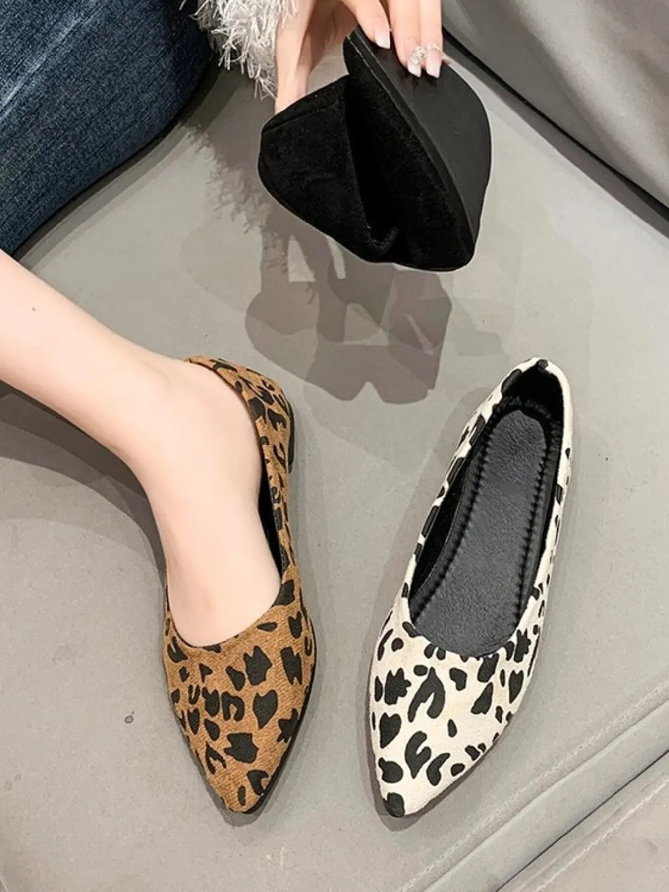 Step out with confidence in Prowl & Point Suede Flats! These slip-ons prove you don't have to sacrifice style for comfort. The sleek pointed toe and soft, suede-like upper give them an upscale look. Choose from classic solid black for minimalist chic, or make a statement with the fierce leopard or spotted prints. Crafted with a lightweight cotton/PU blend and a flexible rubber sole, they're the comfortable, sophisticated flat you'll want to wear everywhere.