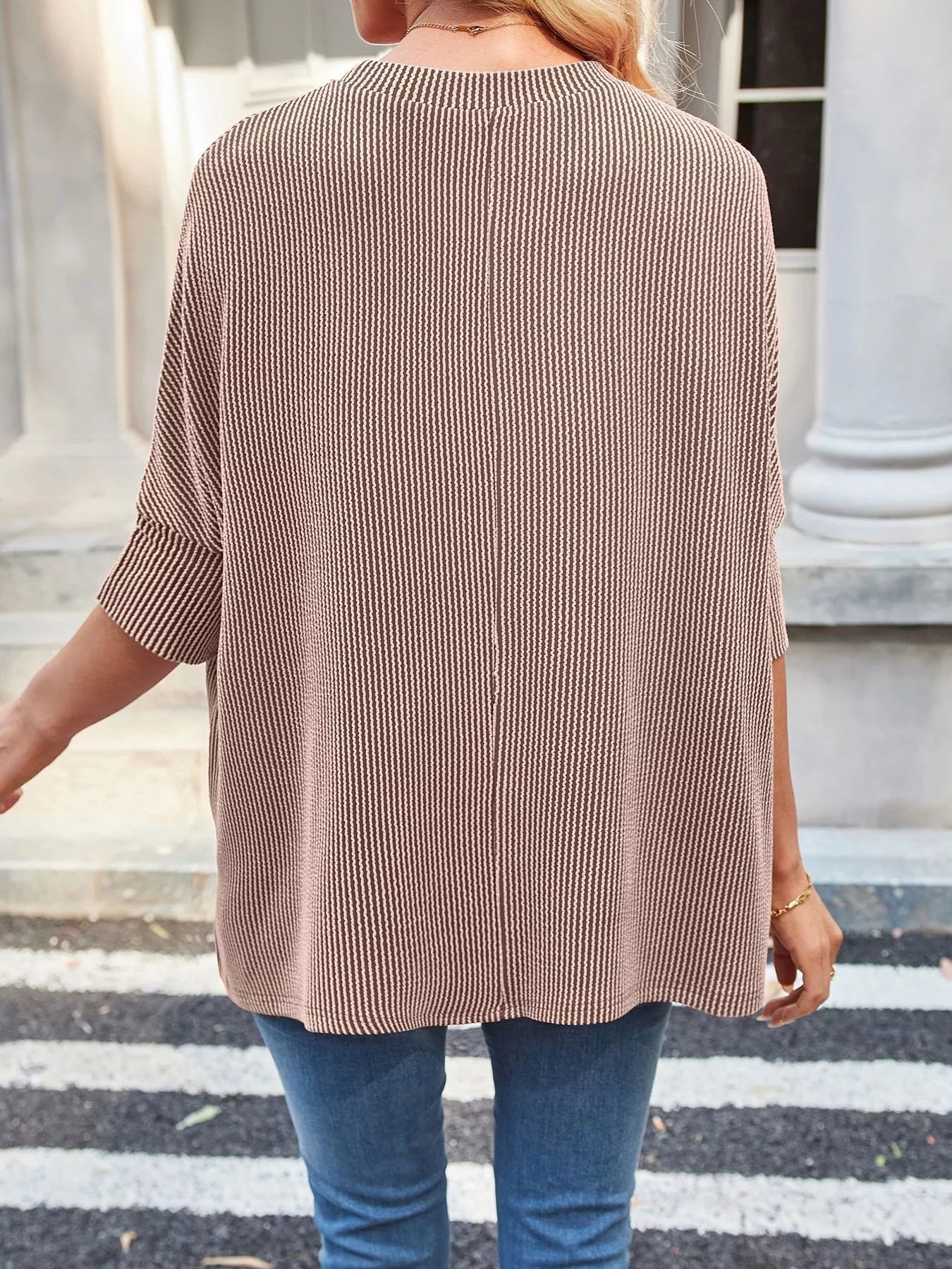 Add a touch of effortless boutique charm to your everyday rotation with a piece designed for comfort and understated style. The Endless Ease Top features a sophisticated, textured knit in a rich cranberry hue, offering a refined look that transitions seamlessly from your first coffee of the day to an afternoon with friends. Designed with a modern relaxed fit and elbow-length half sleeves, this top provides a flattering, airy silhouette that pairs perfectly with your favorite denim. Crafted from a soft-touch, lightweight fabric, it is the ultimate go-to essential for a polished yet laid-back aesthetic.