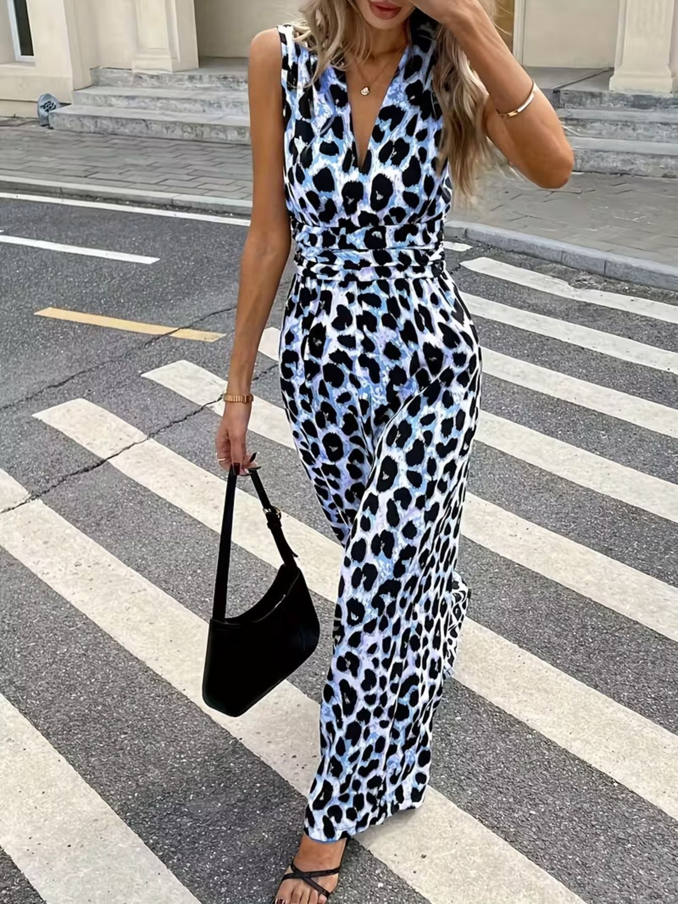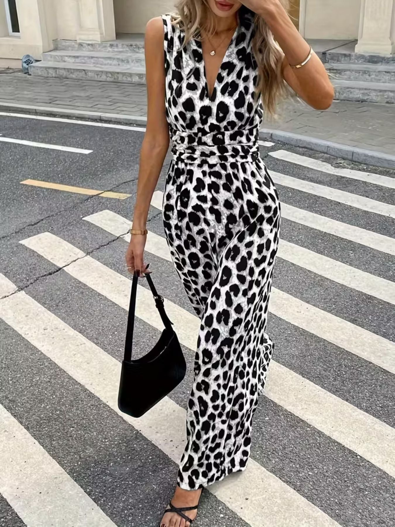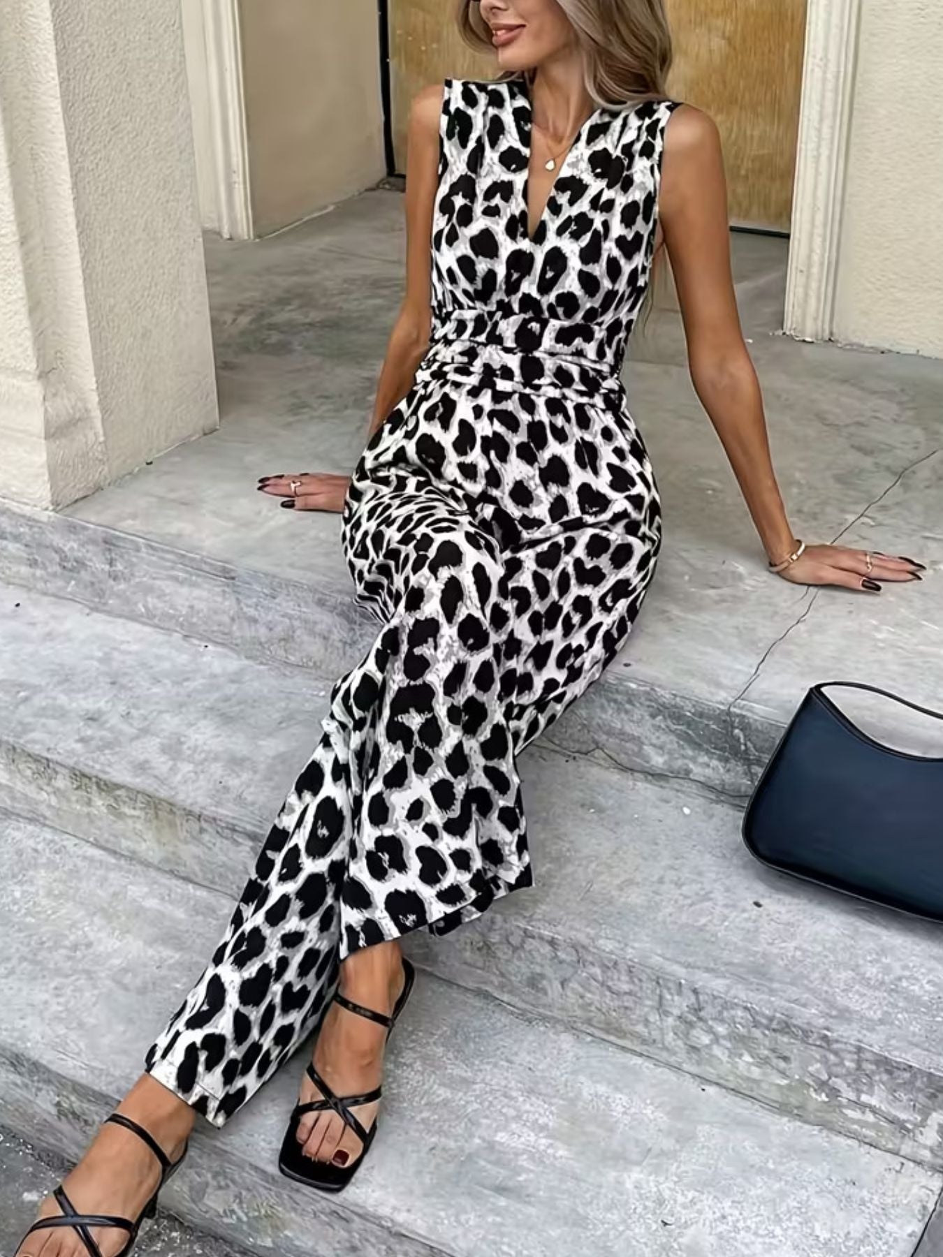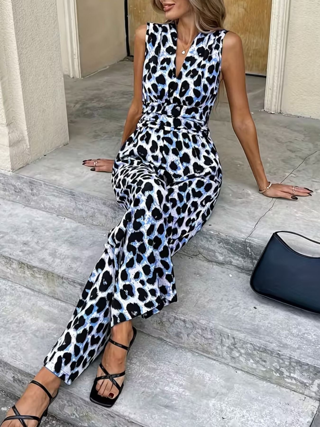 - Features: Sleeveless, V-Neck, Wide Leg, Smocked