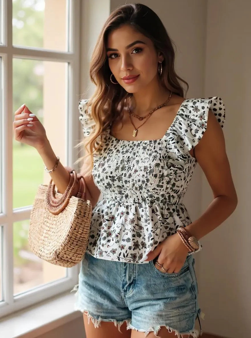 Feminine, flirty, and ready for sunshine — the Meadow Muse is your go-to top for breezy days out. With its delicate ruffled cap sleeves, square neckline, and stretchy smocked bodice, this blouse flatters in all the right places while giving off a sweet, effortless vibe. Pair it with denim shorts and a straw tote for an easy picnic or farmers market look that feels like summer in full bloom!