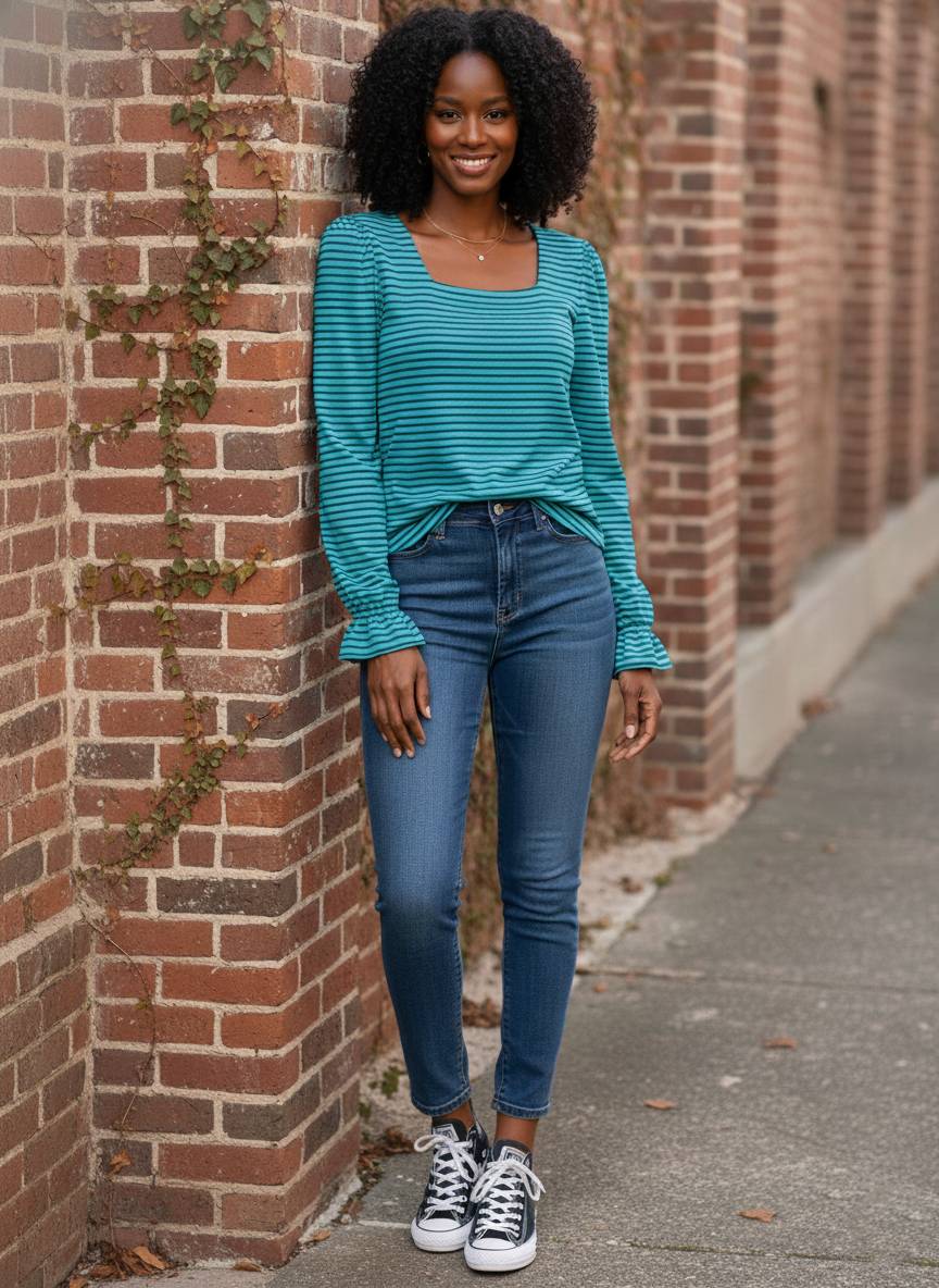Capture that effortlessly chic, boutique vibe with a top designed for your favorite weekend rituals. The What a Colorful View Top elevates a classic striped essential with a sophisticated square neckline and feminine ruffle cuffs that add just the right amount of artisanal detail. Crafted from a smooth, slightly stretchy blend of 95% polyester and 5% spandex, this long-sleeve tee offers a flattering, body-skimming fit that feels as good as it looks. Whether you're layering it under a cozy cardigan or letting the bold stripes stand alone, this top is the perfect blend of modern style and casual comfort.
