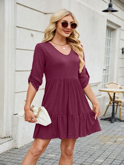 Tiered Ruched V-Neck Mini Dress (multiple color options)