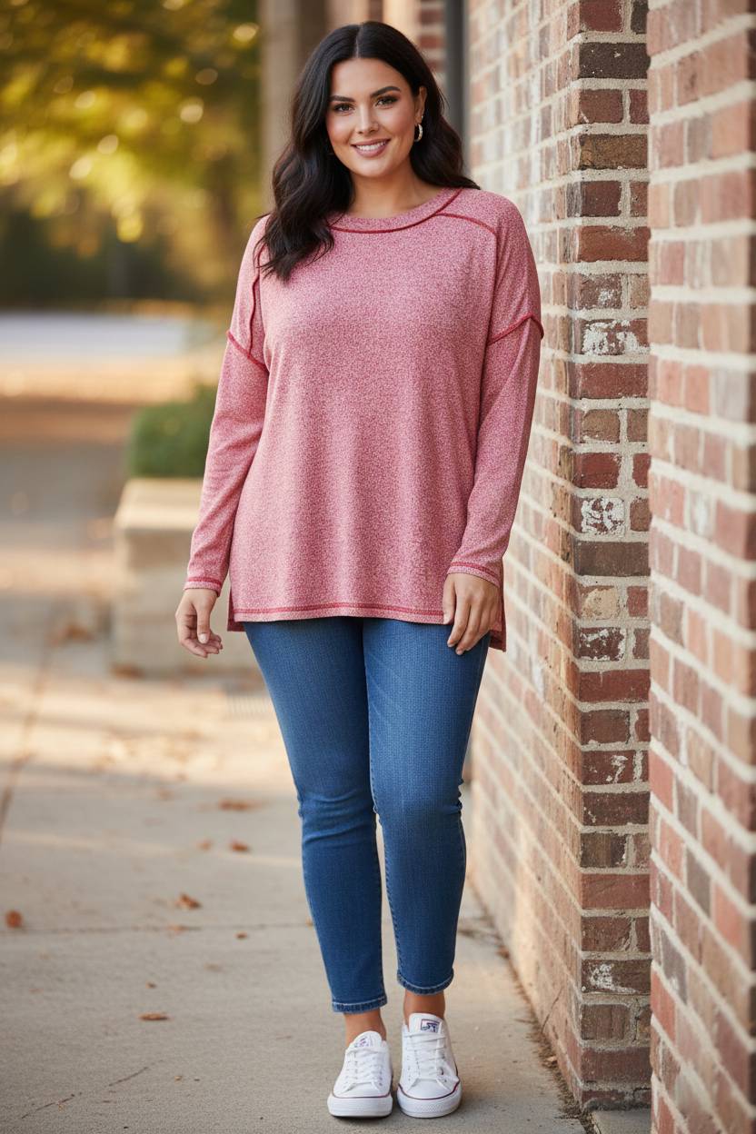 The Soft Melange Hacci Exposed Seam Hi-low Tee is a must-have for effortless style and comfort. Made from a soft and cozy fabric, this tee is perfect for everyday wear. The exposed seams add a trendy and edgy touch to the classic hi-low design. Pair it with your favorite jeans or leggings for a casual chic look. Stay comfortable and stylish in the Soft Melange Hacci Exposed Seam Hi-low Tee!