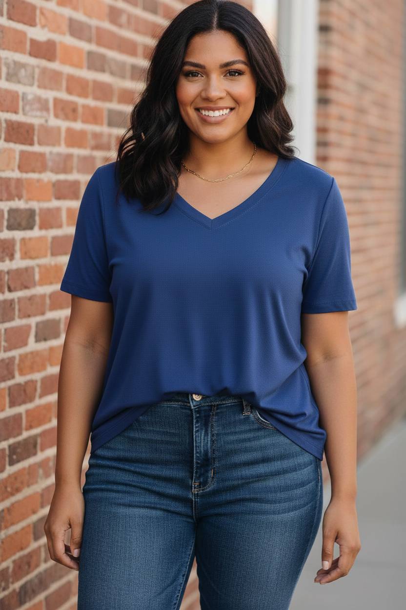 Effortlessly capture a mood of sun-drenched sophistication with a piece designed for your most relaxed moments. The Daybreak In Malibu Tee is the ultimate boutique essential, offering a clean basic style that transitions beautifully from a morning coffee run to a casual sunset stroll. Featuring a flattering V-neck and a classic short-sleeve silhouette, this tee provides a polished foundation for any ensemble. Crafted from a premium blend of 95% cotton and 5% spandex, it offers a soft-touch feel and slight stretch for all-day comfort that moves with you.